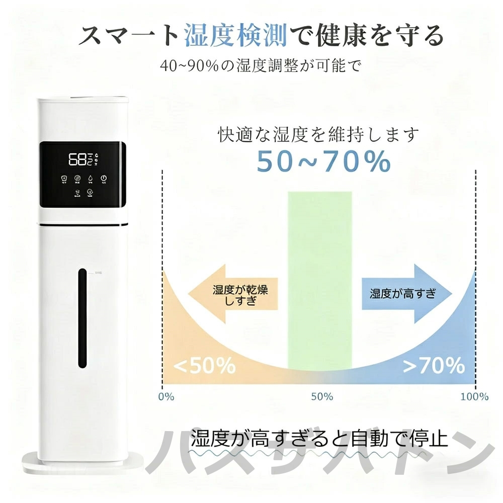 設定した湿度超えると、加湿を自動停止、加湿過ぎ防止、設定した湿度復帰すると、加湿を自動起動します。