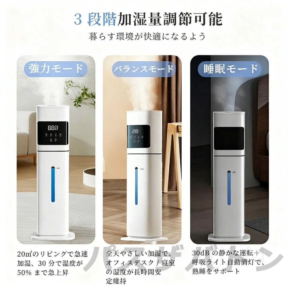 強力モード・バランスモード・睡眠モード、3 段階のモードを自由に選択可能です。