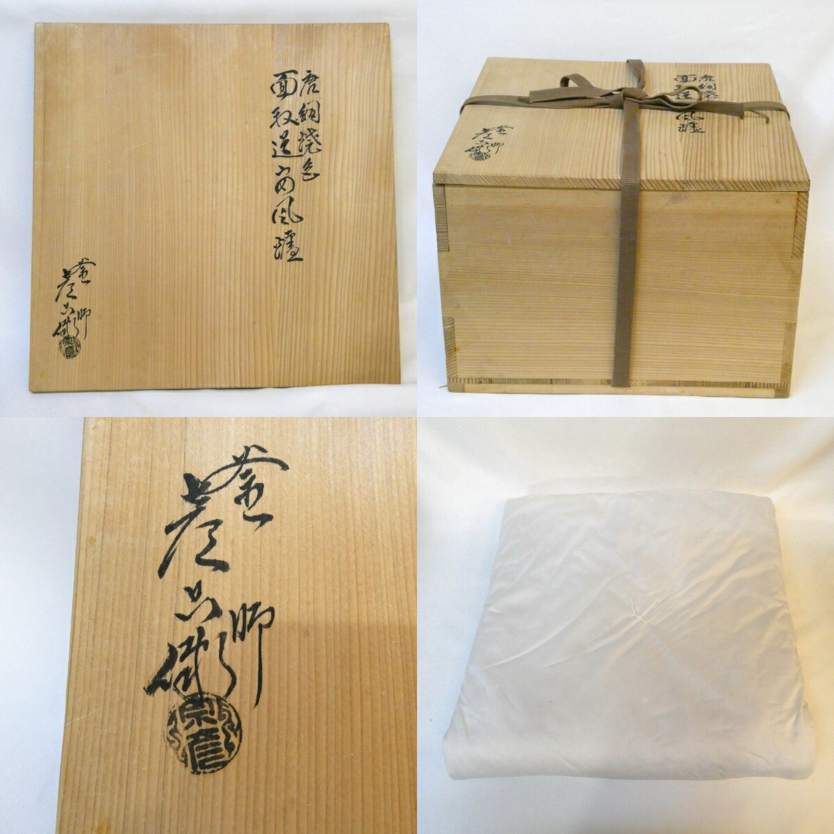 赤っぽい色味の風炉で、本焼という、漆を焼き込んで景色を表現する技法が使われています。