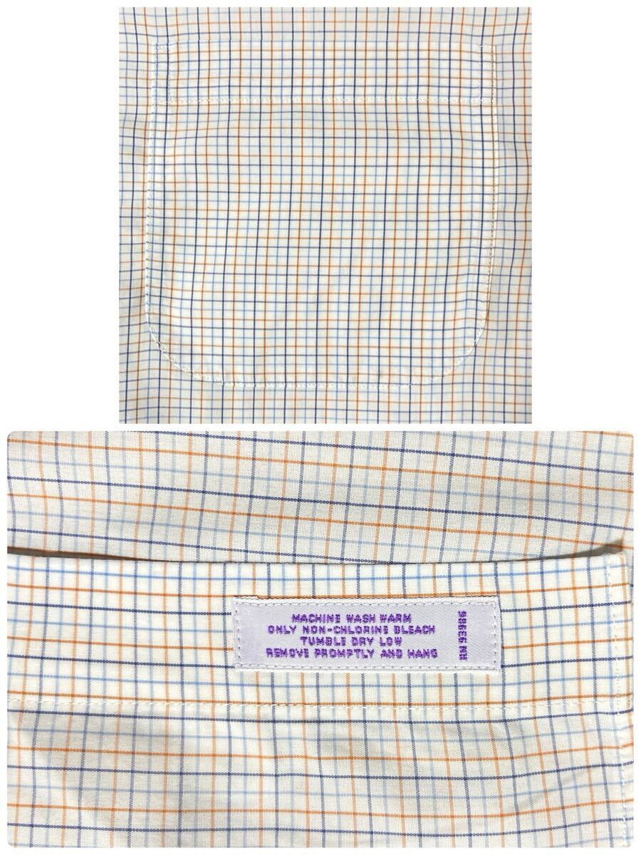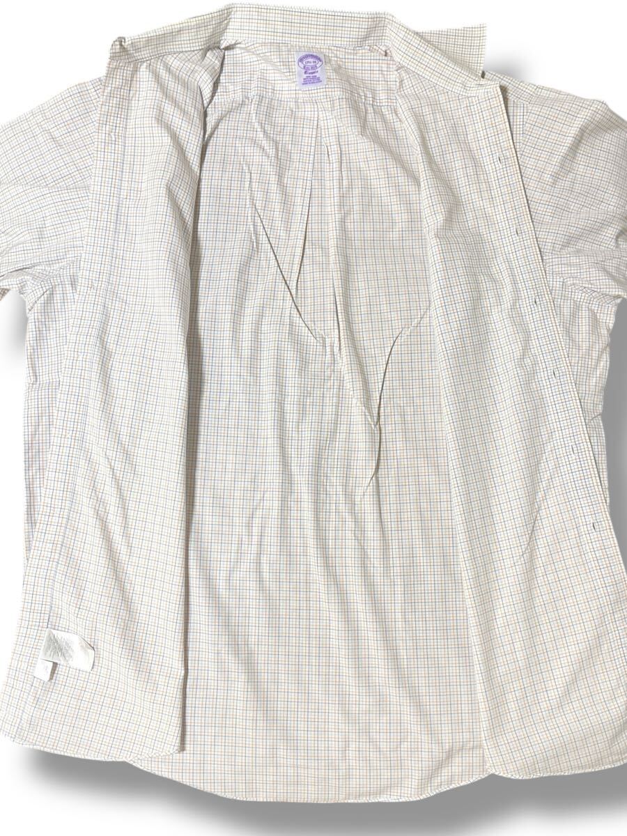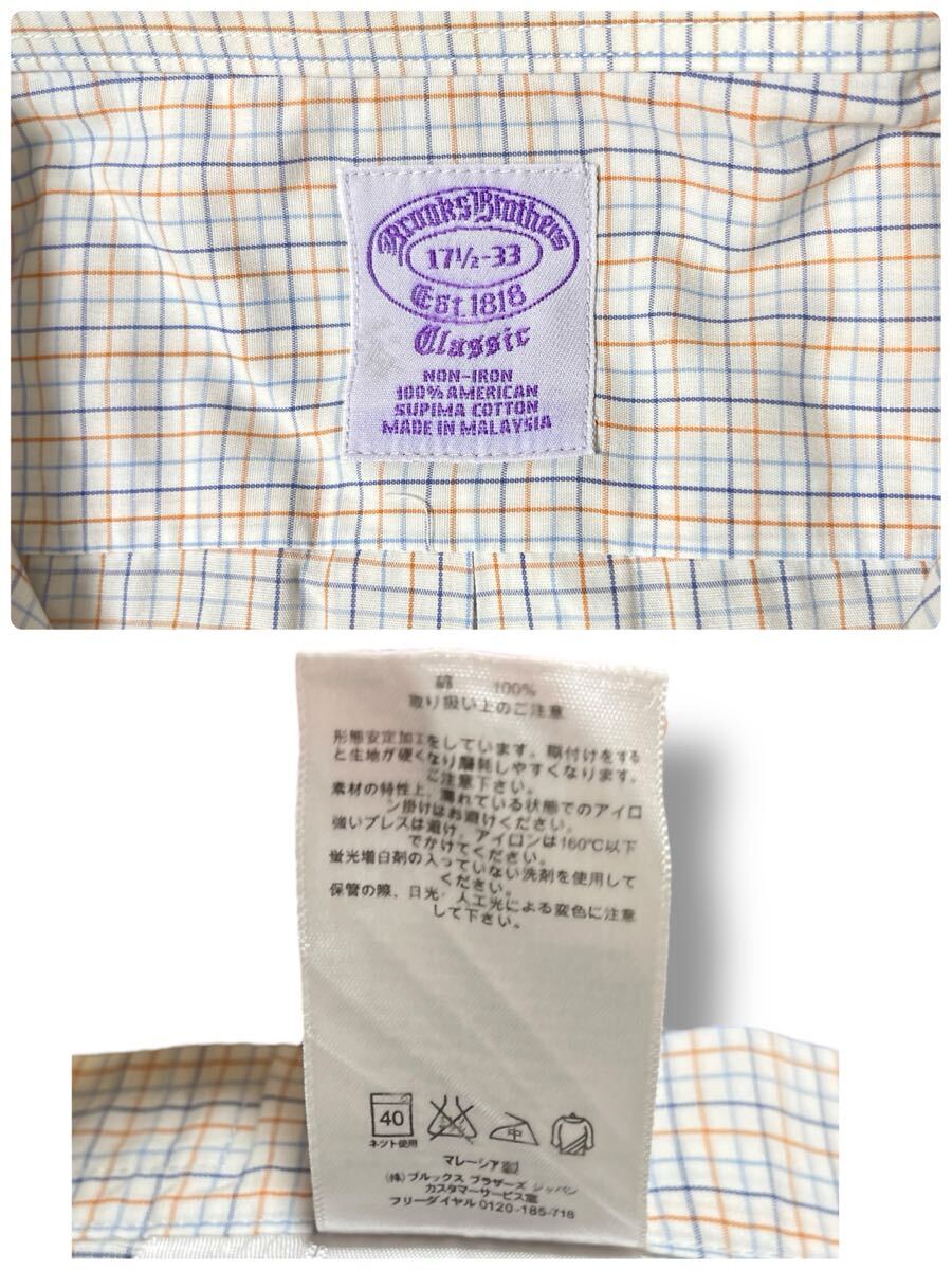 Brooks Brothers Est.1818 長袖シャツ ホワイト×オレンジ×ブルー系チェック 17 1/2-33 ●洗濯プレス済●ネコポス可● シャツ 白 古着/747