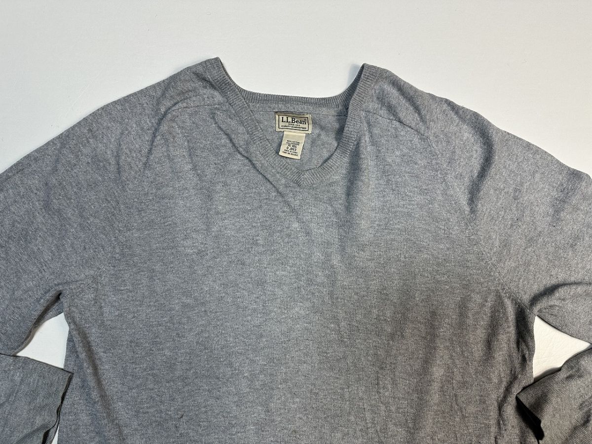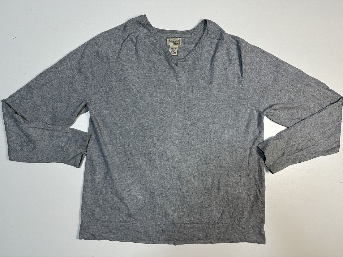●US USED ビッグサイズ US古着 L.L.Bean エルエルビーン 90s 90年代 ニット セーター Vネック コットンカシミア グレー レディース【XL】
