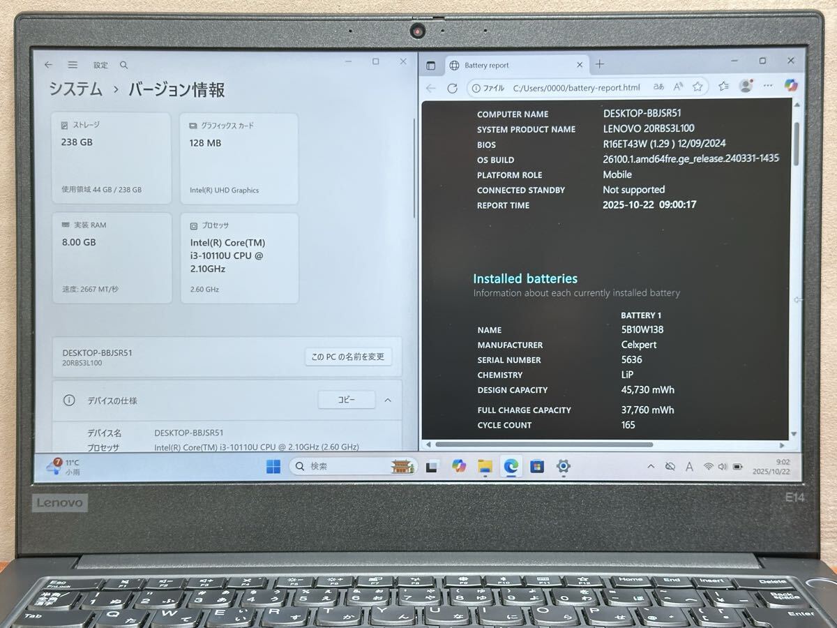 ・CPU: Core i3-10110U 2.1GHz, ターボブースト: 4.1GHz