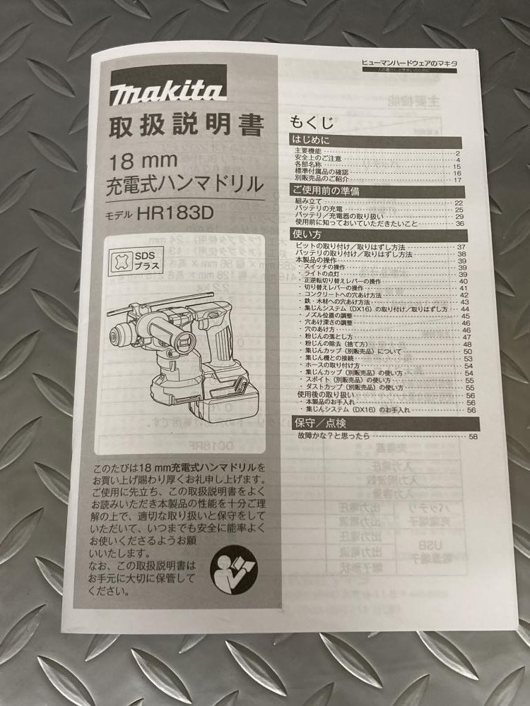 マキタ ■商品名 18mm18V充電式ハンマドリル ■型番 HR183DZK |