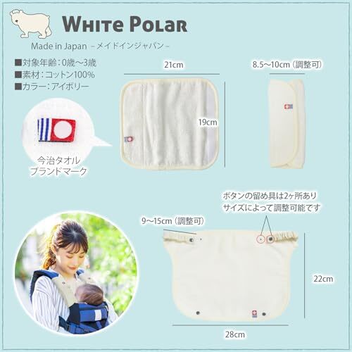 【製品仕様】今治タオルブランド認定商品、素材:綿100%、サイズ(よだれカバー):横幅 約21cm、縦 約19cm、サイズ(胸カバー):横幅 約28cm、縦 約22cm、対象年齢:0歳~3歳、産地:日本製、カラー:アイボリー