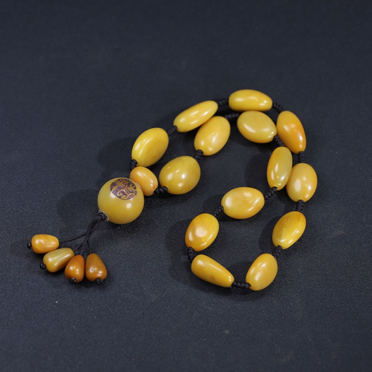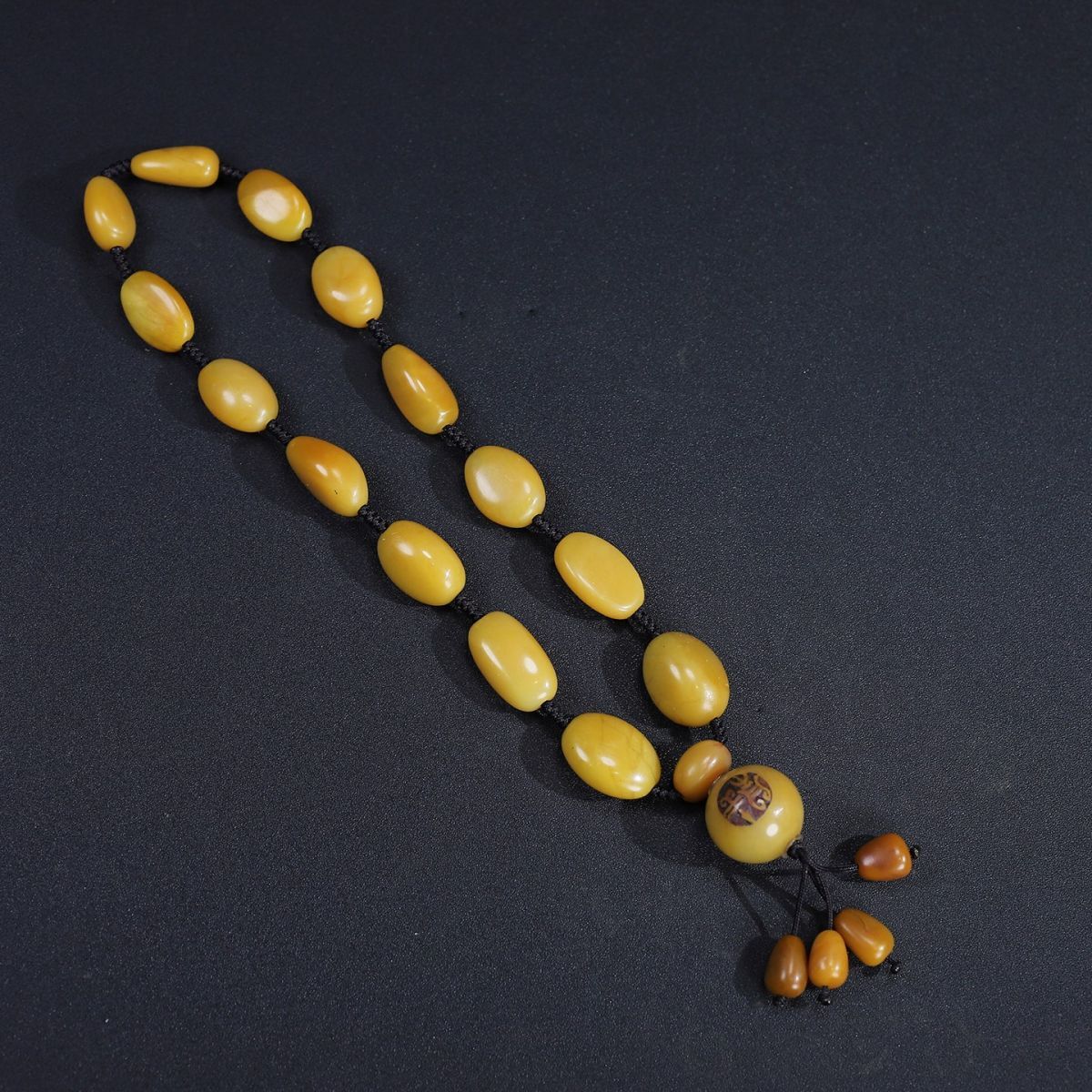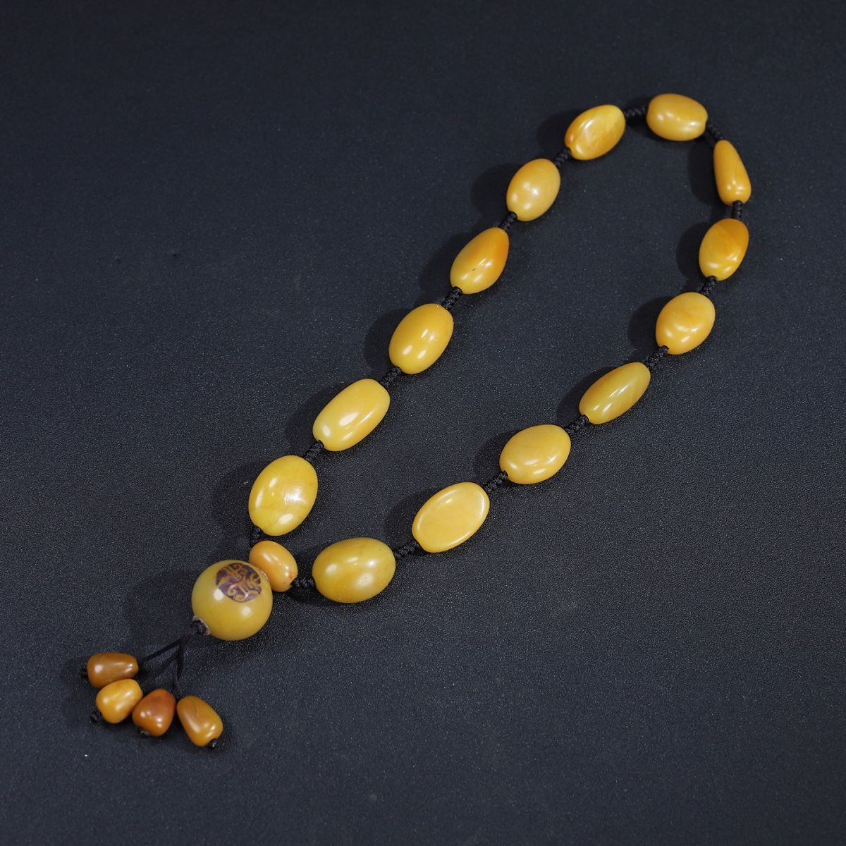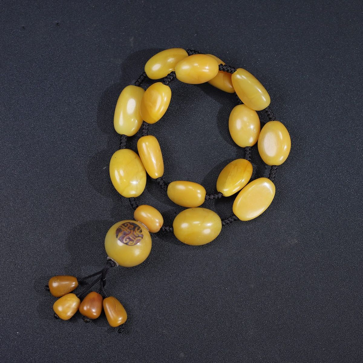 【永】清時代 壽山石 田黄石彫 子料 手串 極細工 置物擺件 古美術品 時代物 古董品 収集 旧家蔵出 中国唐物 78g