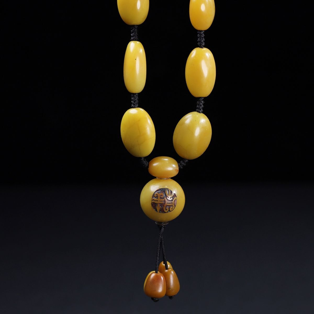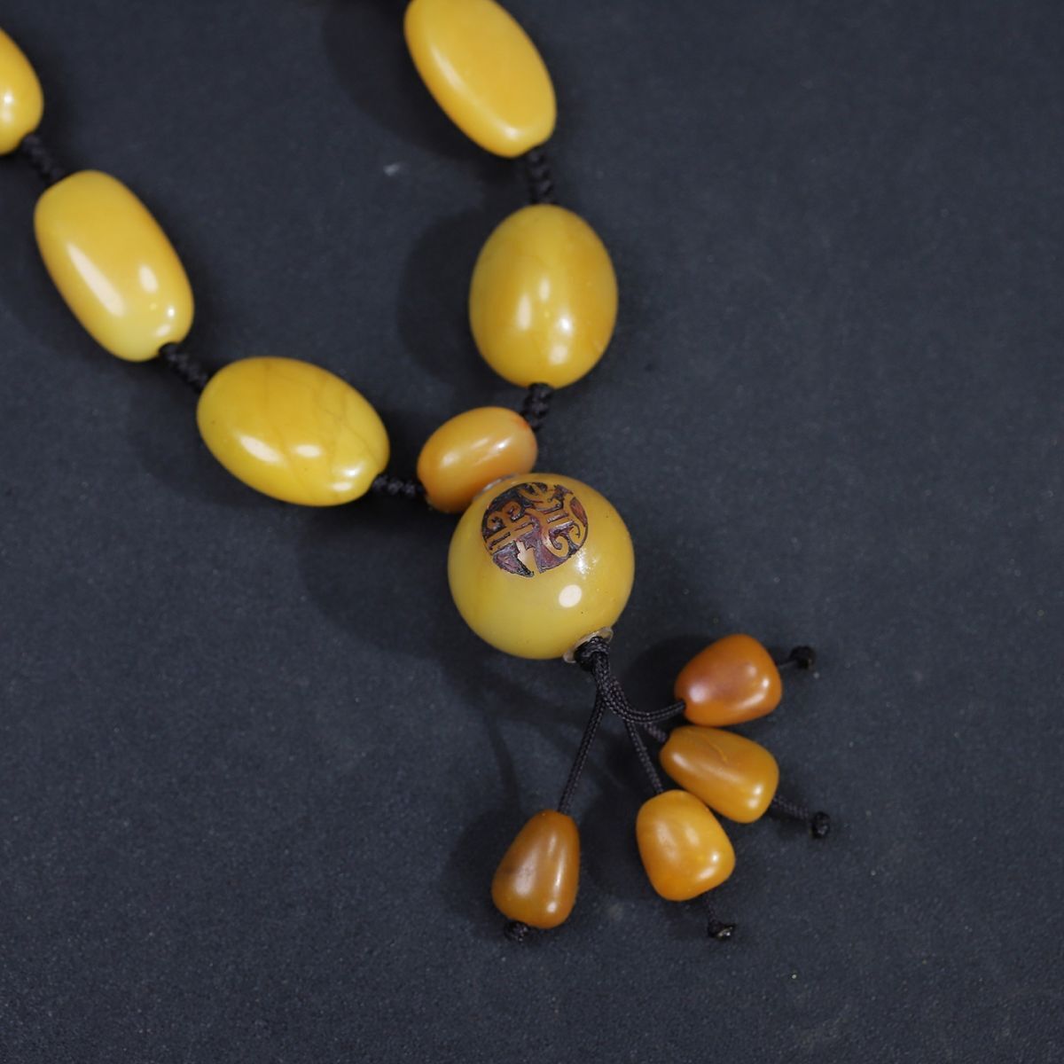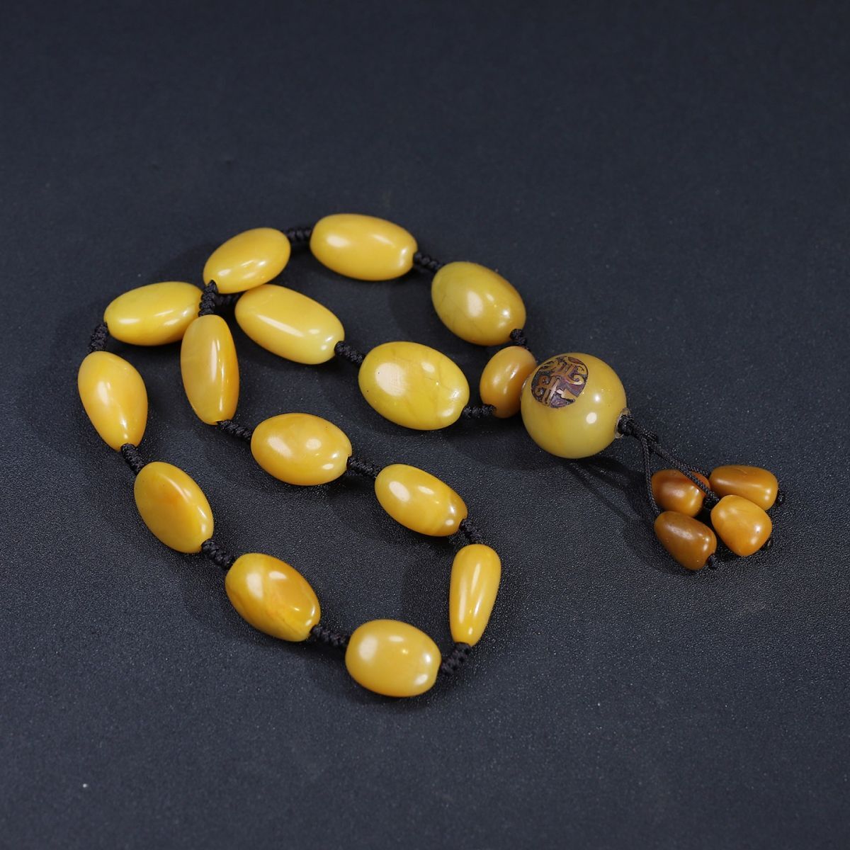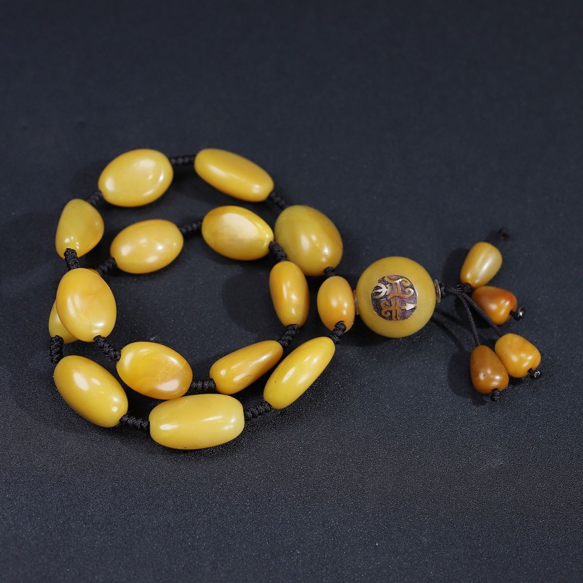 【永】清時代 壽山石 田黄石彫 子料 手串 極細工 置物擺件 古美術品 時代物 古董品 収集 旧家蔵出 中国唐物 78g