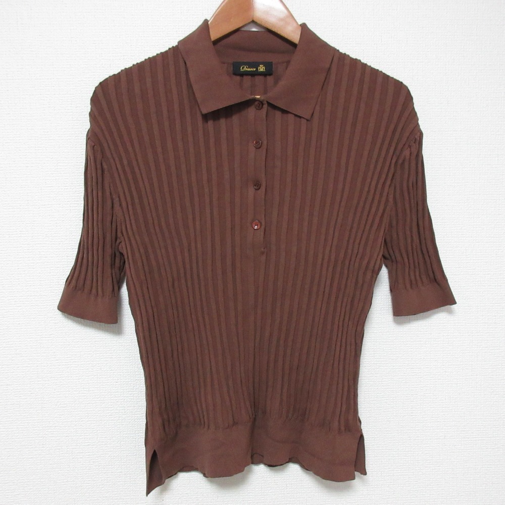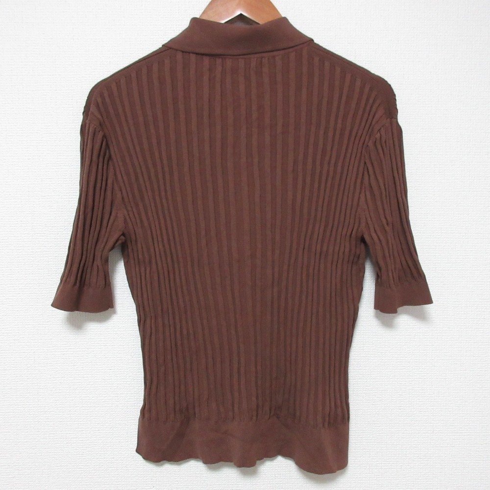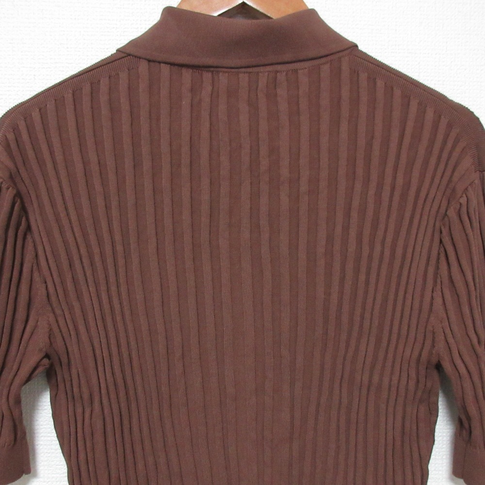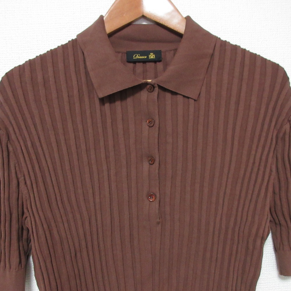 良品 Drawer ドゥロワー コットン リブ編み ショートスリーブ ニットポロシャツ ブラウン