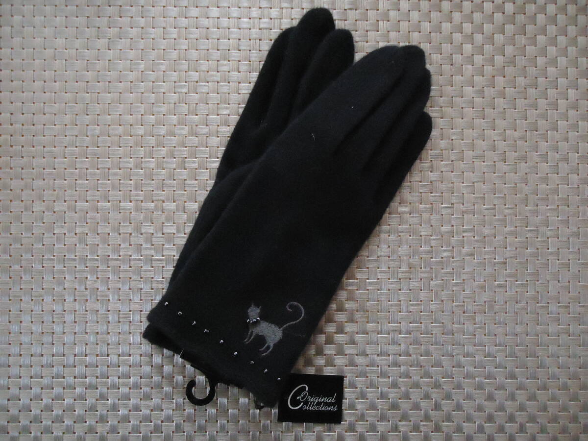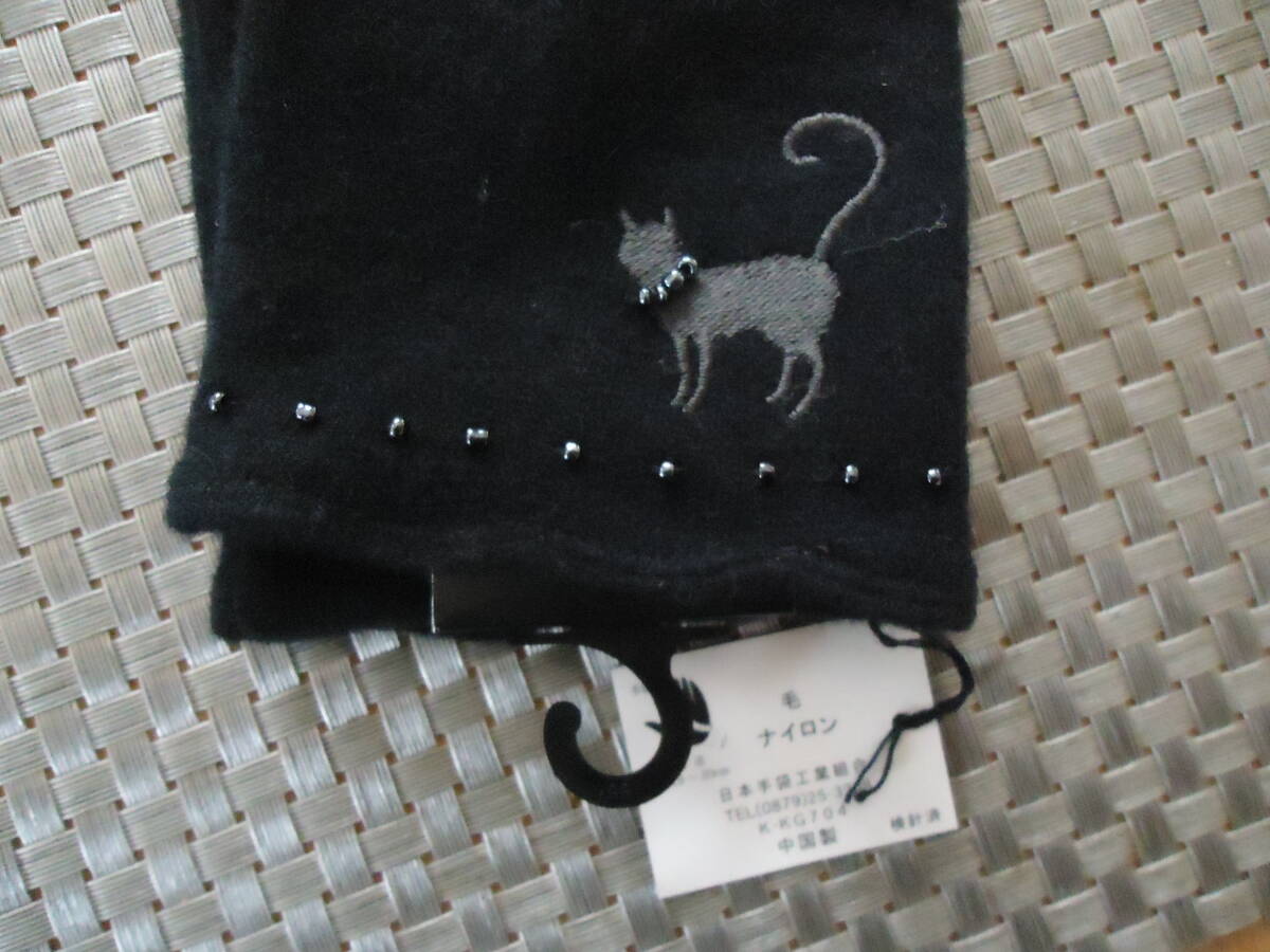 ★猫の刺しゅう手袋★ウール★新品★ブラック★
