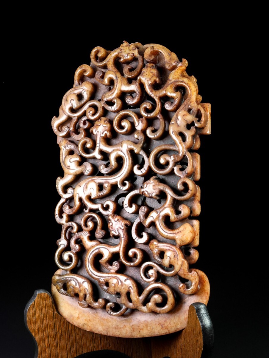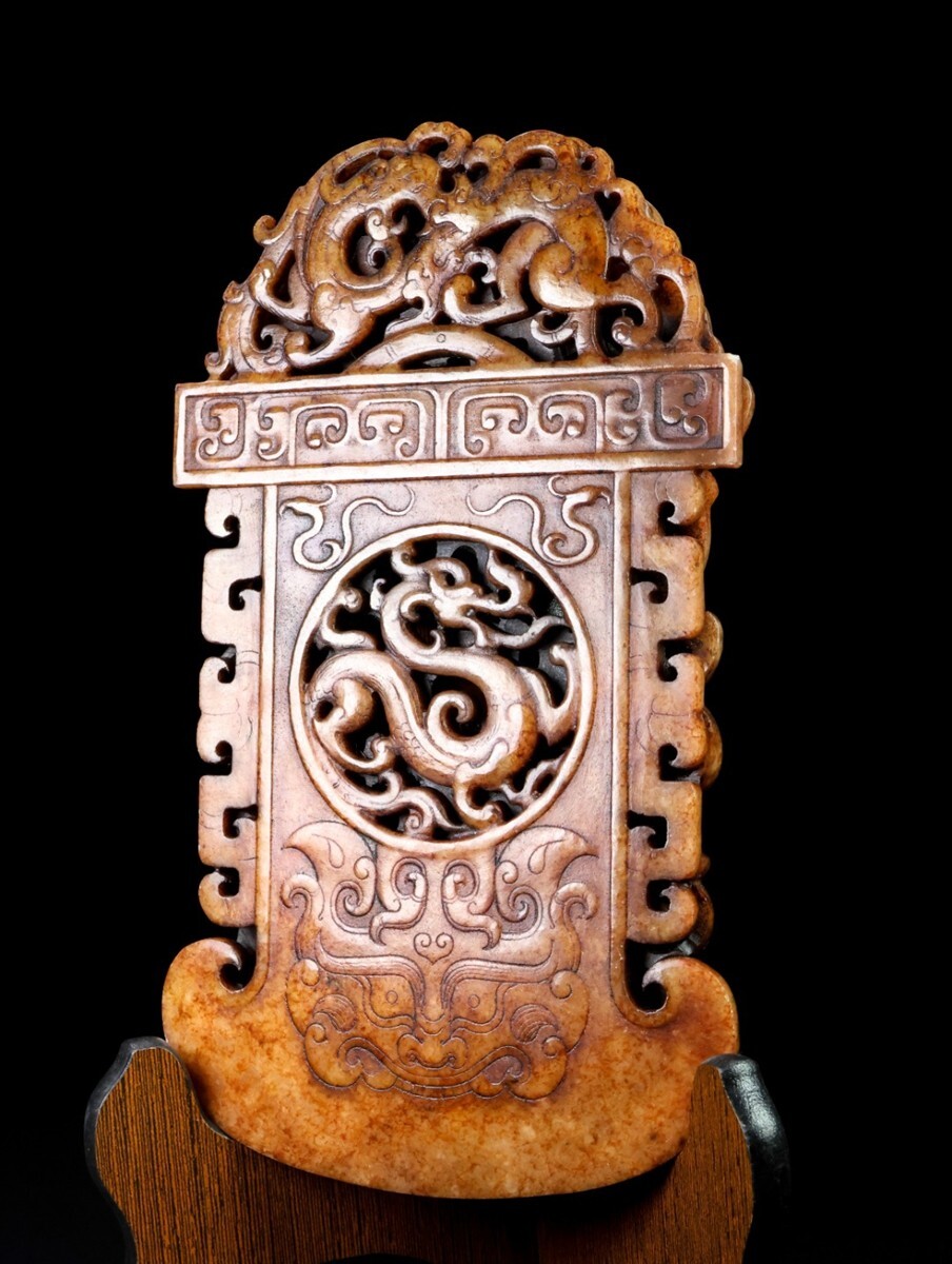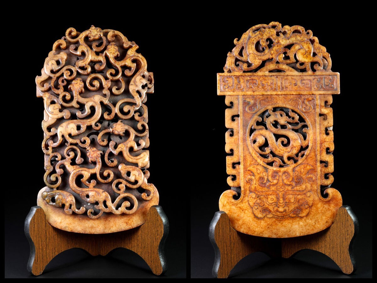 「時代物 和田玉 高古玉彫り 府上有龍」極細工 擺件 中国古賞物 古美術 旧蔵出