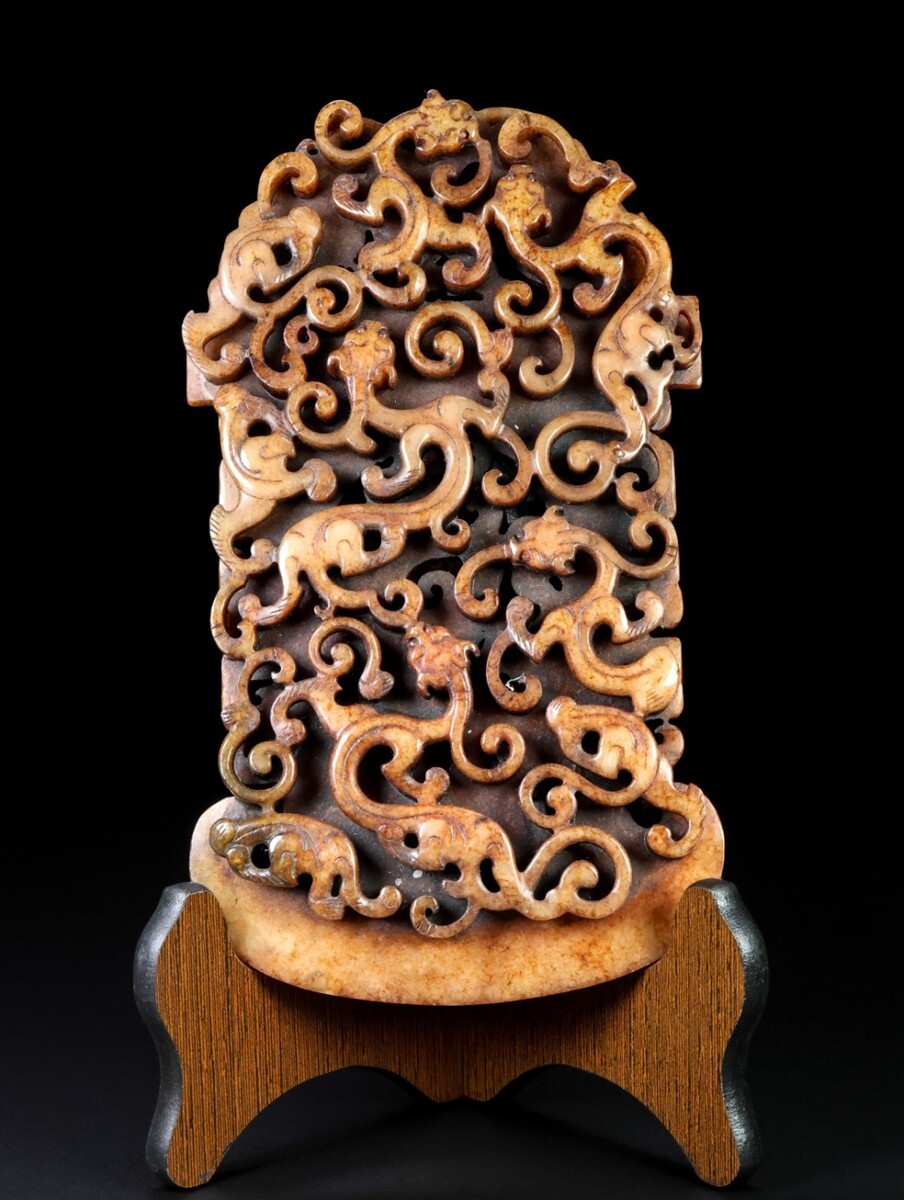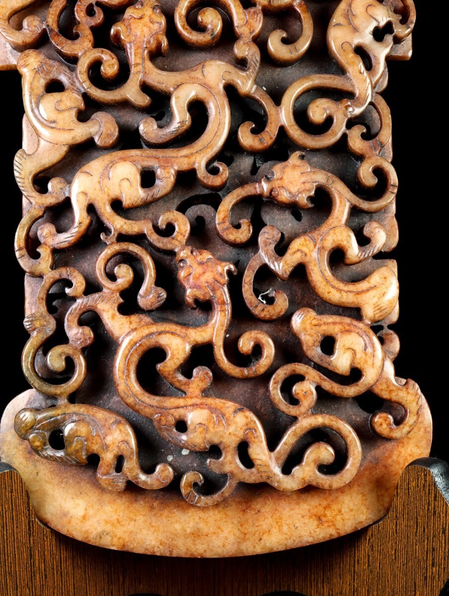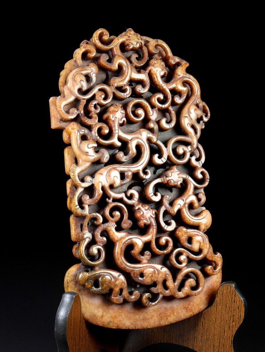 「時代物 和田玉 高古玉彫り 府上有龍」極細工 擺件 中国古賞物 古美術 旧蔵出