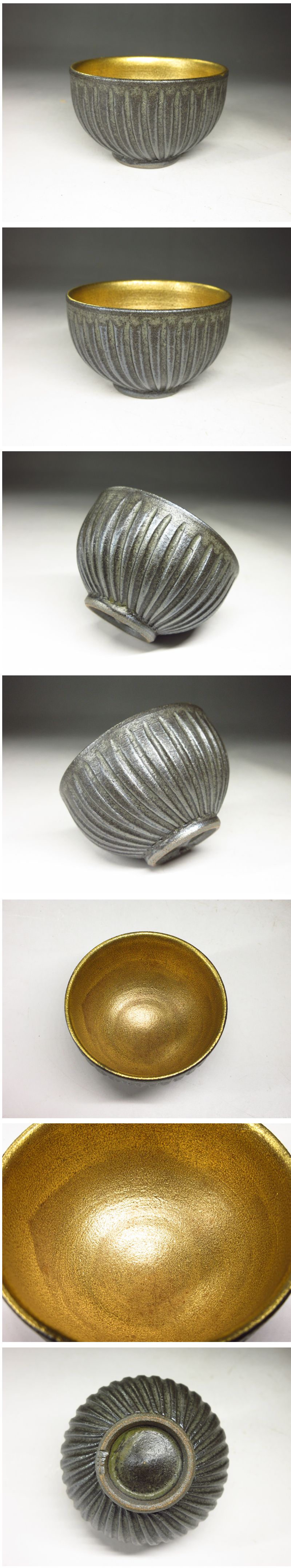 【漸】コレクター放出品『植竹敏』造 金彩ぐい呑 共箱 栞付き 盃 酒器 酒杯 本物保証【KK026】