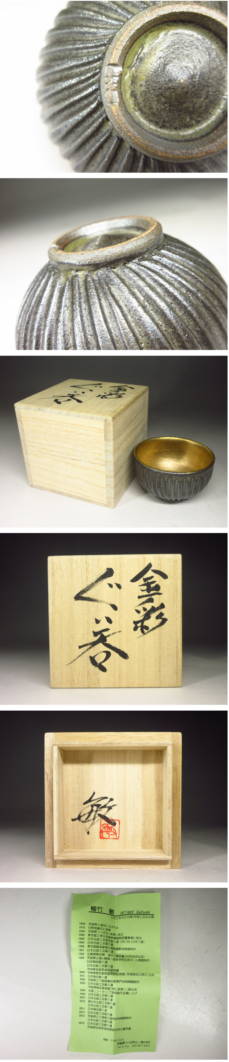 コレクター放出品『植竹敏』造 金彩ぐい呑 共箱 栞付き 盃 酒器 酒杯 本物保証