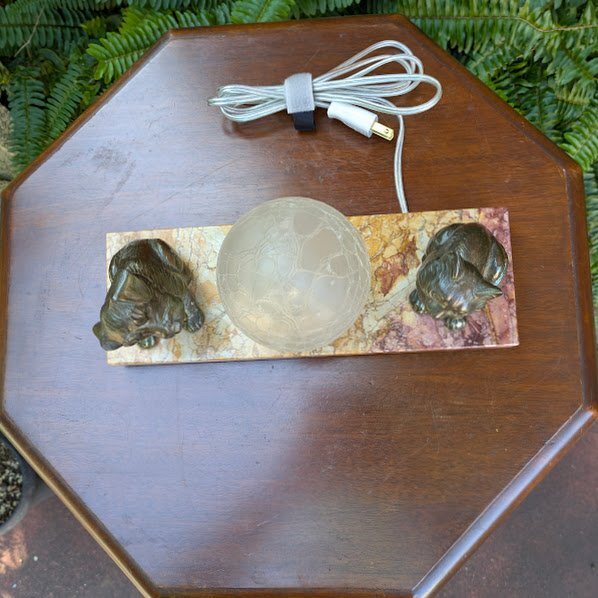 フランスアンティーク 犬&猫の愛らしいデスクランプ【45-426】ナイトライト ベッドサイドランプ 大理石 照明 テーブルランプ