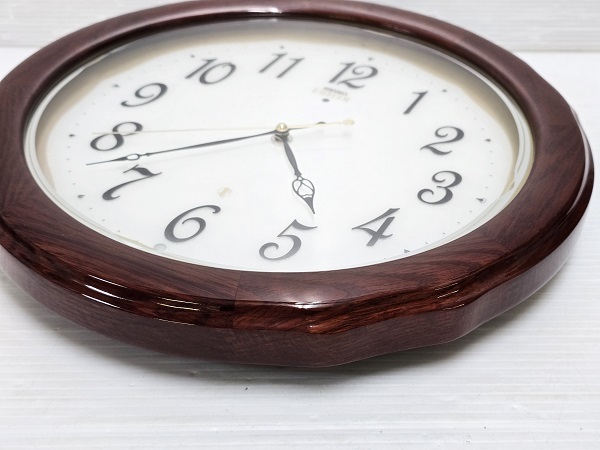 【中古品】 セイコー SEIKO エムブレム 電波掛け時計 HS521B 天然木枠仕様 静音 ナチュラル系 インテリアに ○YR-19152○