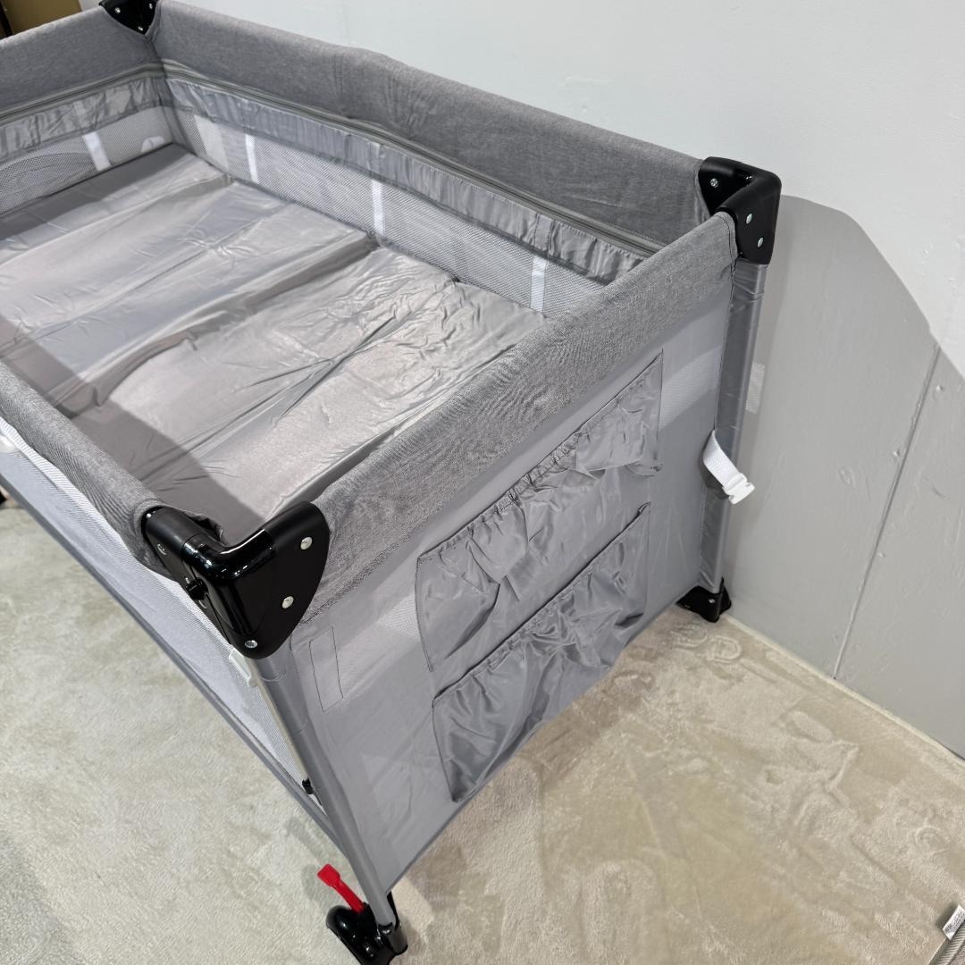 【商品名】:ベビーサークル プレイヤード 折りたたみ 添い寝ベッド サイド高さ調整可能 マット付 収納バッグ付 マットレス付 キャスター付き 多機能 軽量 出産祝い