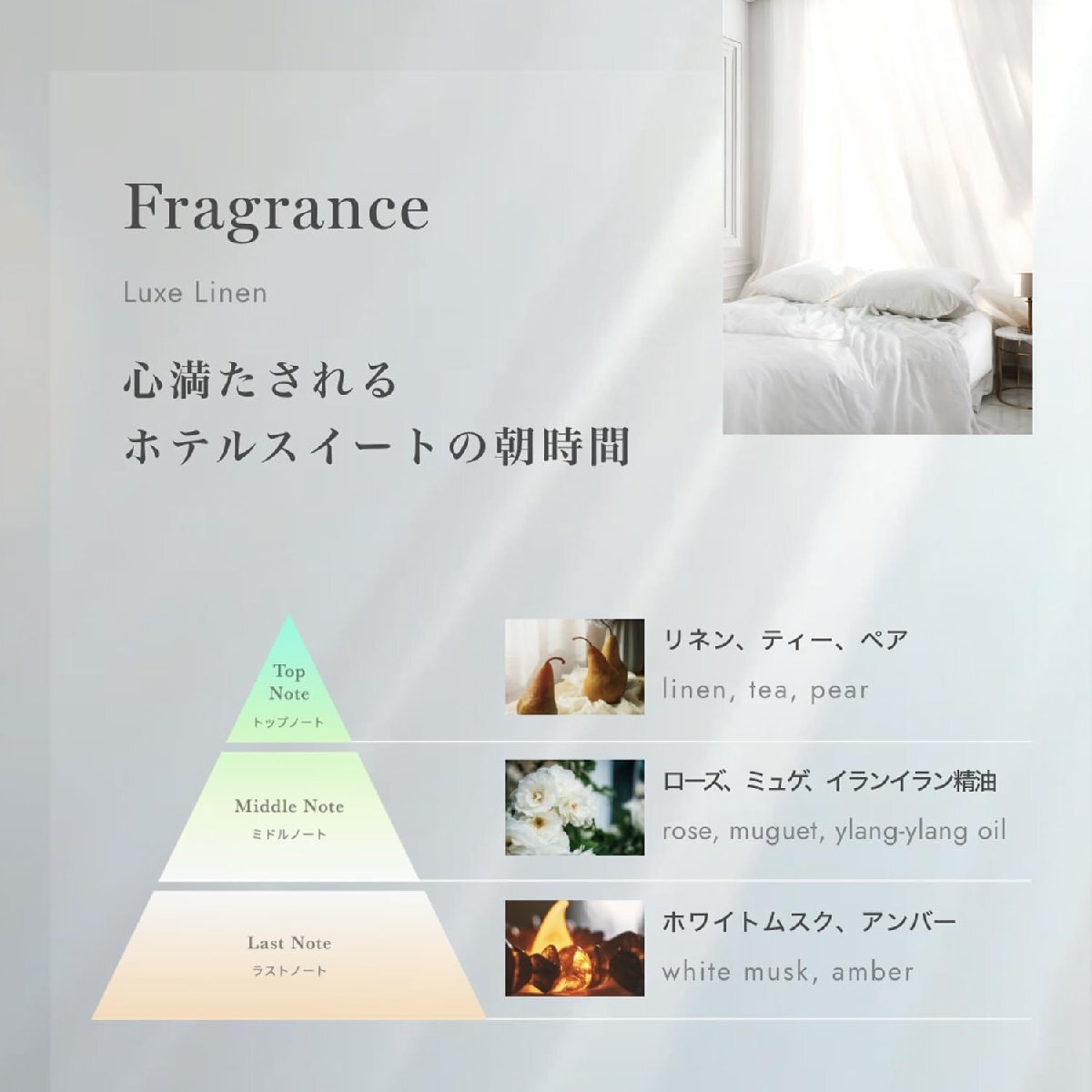 ◆爽やかな朝に感じるリネンにミュゲやホワイトムスク重なる「リュクスリネンの香り」で衣類をより美しく、香り高く仕上げる柔軟剤です。