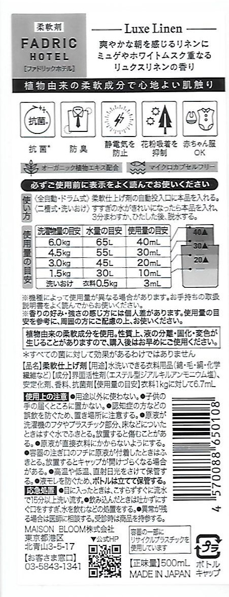 ◆ファドリックホテル(FADRIC HOTEL)『柔軟剤 本体 リュクスリネンの香り(500ml)』を【8個セット】で販売いたします。