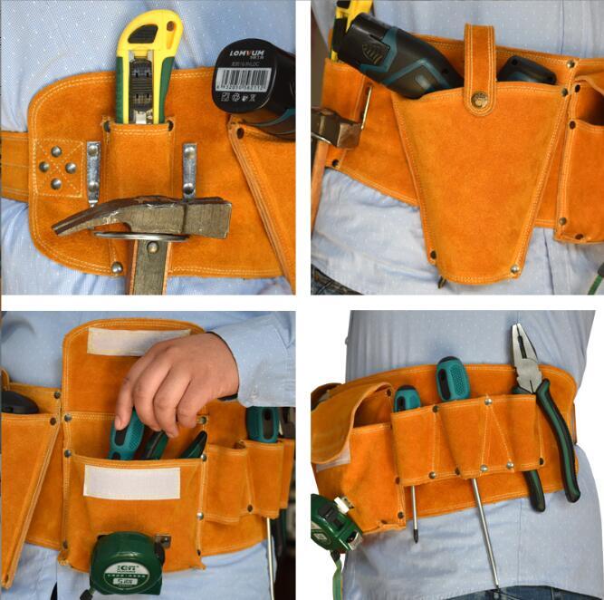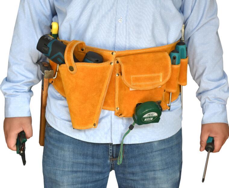 人気品工具入れ 腰袋工具袋 電気技師ウエストツールベルトレザー多機能ワークバッグ牛革デザイン軽量電気工事 ワークポーチ 高級 電工腰袋