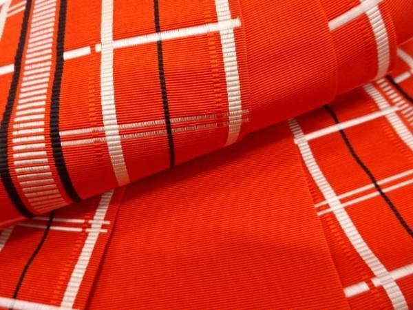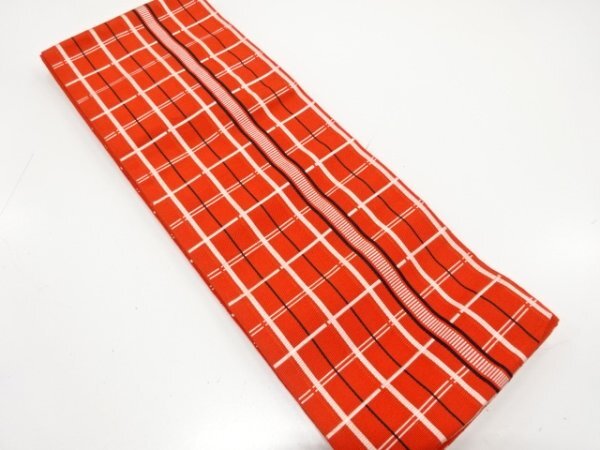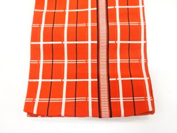ys7566709; 本場筑前博多 格子模様織り出し 半幅帯【着】