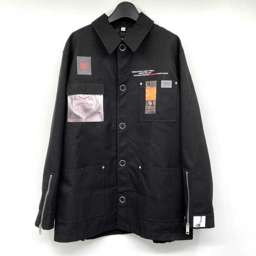 | 209999090890)BURBERRY モンタージュプリント コットン ワークジャケット サイズ52 ブラック 4558224 バーバリー |