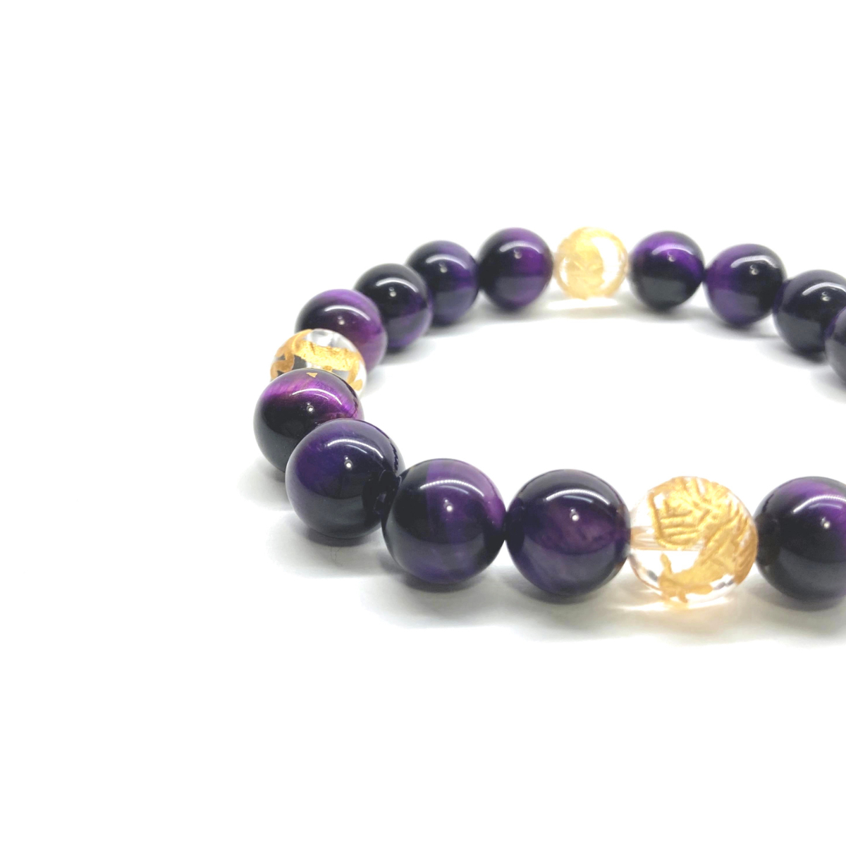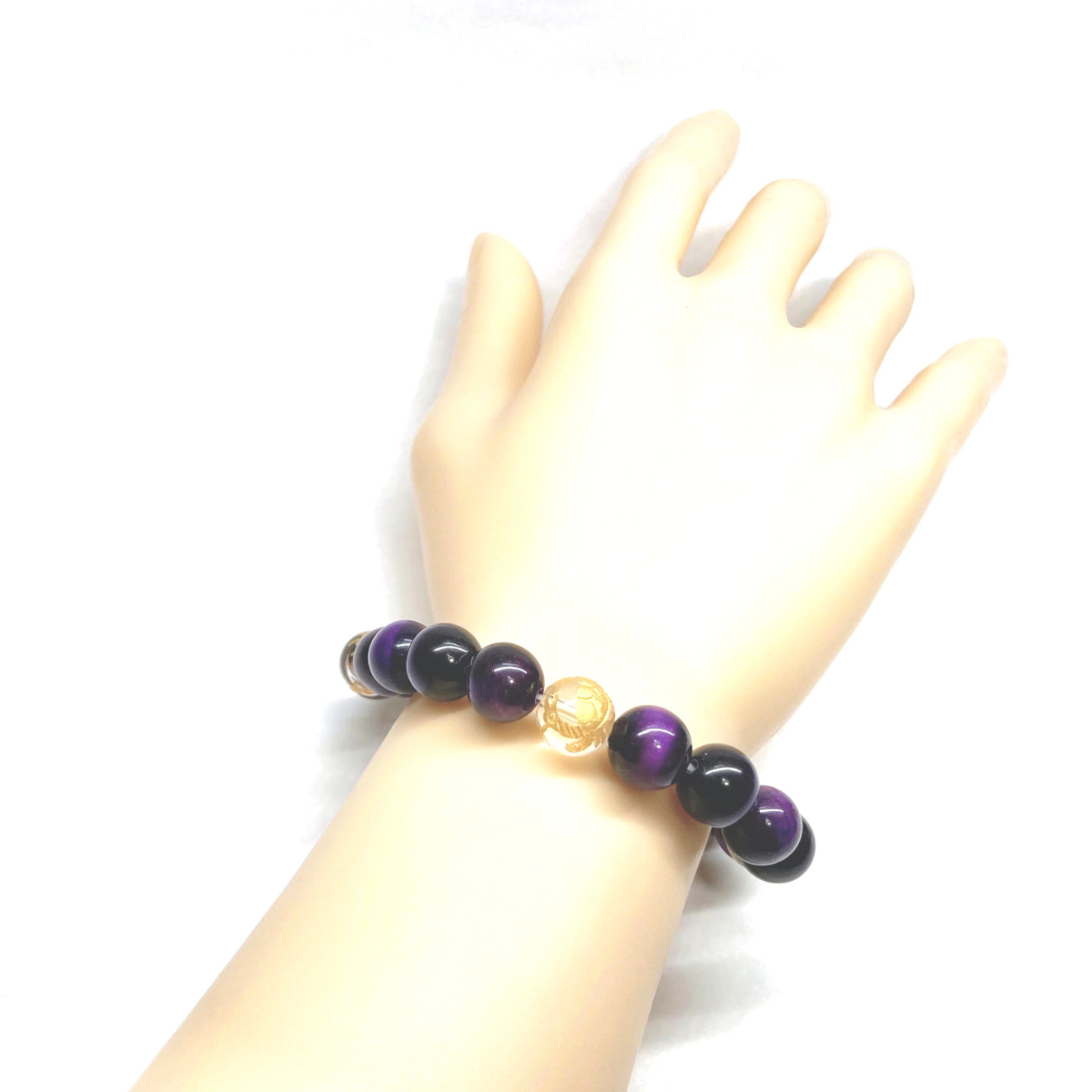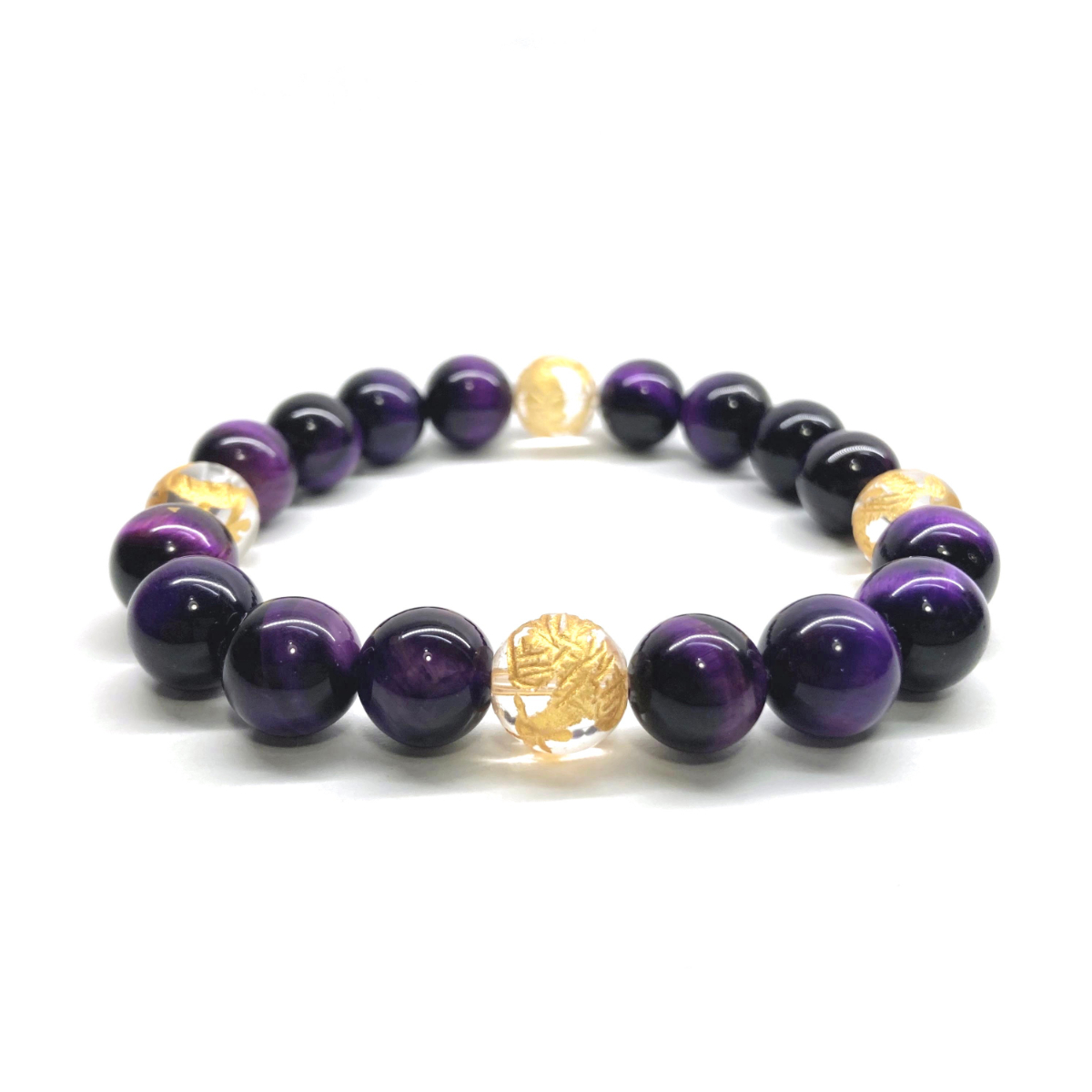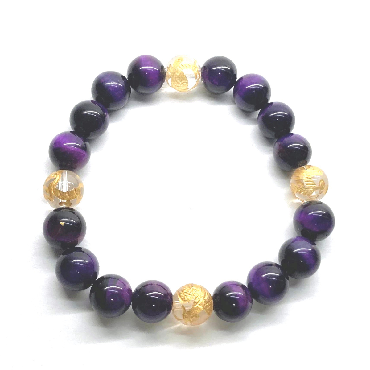 10mm 四神獣金彫水晶×パープルタイガーアイ パワーストーン ブレスレット天然石 運気上昇 開運 金運 青龍 白虎 玄武 朱雀 ☆