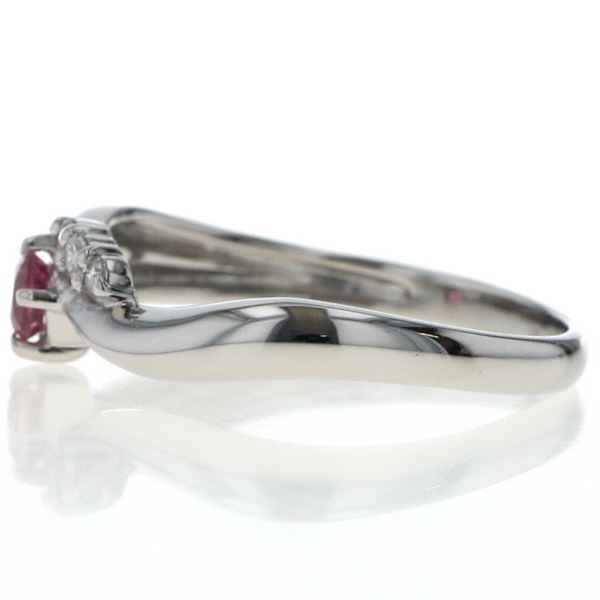 | 商品紹介 | プラチナの地金に、鮮やかなピンク色のトルマリンとダイヤモンドをあしらったリングです。 リングのアームは、二股に分かれてウェーブを描く流れるようなラインが特徴で、中央でピンクトルマリンとダイヤモンドを抱え込むようにセッティングされています。 指元で繊細かつ華やかな輝きを放ちます。 エレガントなフォルムと、女性らしい色石の組み合わせが魅力のジュエリーです。 |