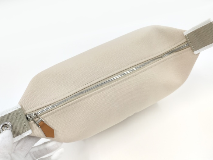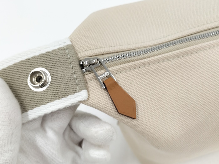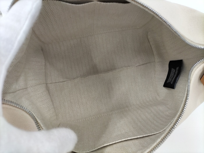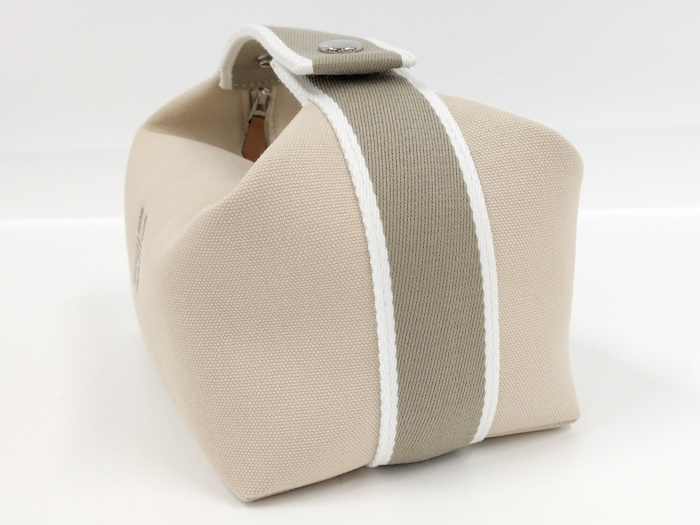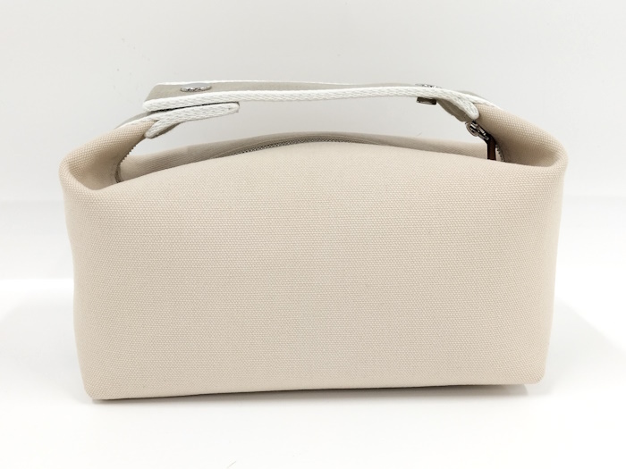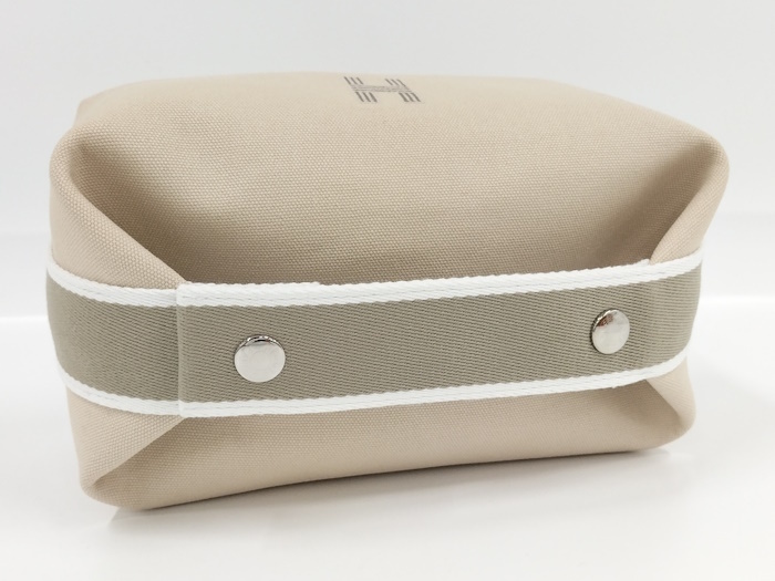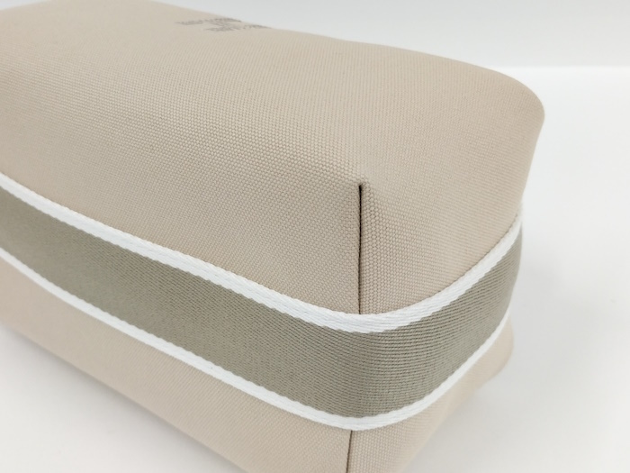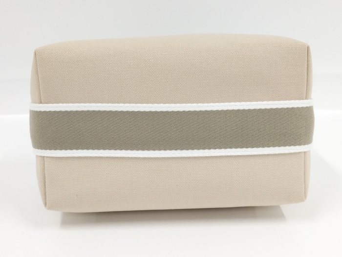 | ◆商品情報 | ・カラー:ベージュ ・素材/ライン:キャンバス ・サイズ:最大約 W21×H11×D12(cm) ※多少の誤差はご了承下さい。 ・内側:オープンポケット×3 |