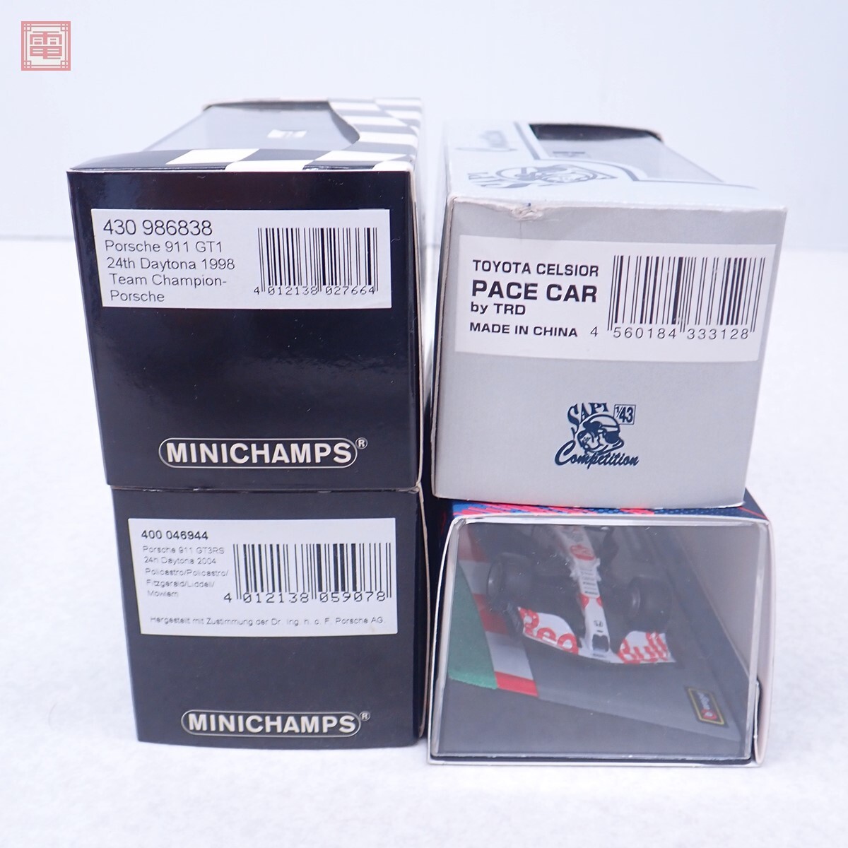 ミニチャンプス/ブラーゴ 他 1/43 ポルシェ 911 GT1 24th デイトナ 1998 #38/Porsche 911 GT3RS 24h Daytona 2004 #44 等 計4点セット ■箱にスレ、キズ、破れがあります。 ■ケースにヒビがあります。 ■写真のものが全てです。付属物の有無や状態については写真からご判断ください。 ■付属物については細かいチェックはしておりませんので、万が一、欠品があったり余計な物が入っていたとしてもご了承ください。 ■商品到着後、当店の保証期間中は、商品及び箱や取説、付属品などを1つでも廃棄や破損をしないようにお願い致します。廃棄や破損をした場合、商品に問題があった場合でも対応や返金などの対処ができなくなります。 ■商品によりますが、発売されてから10年以上経過している中古品である事をご理解頂いた上でご入札をお願い致します。なお、新品や美品、また特記事項がある場合は別途明記します。 | |||
