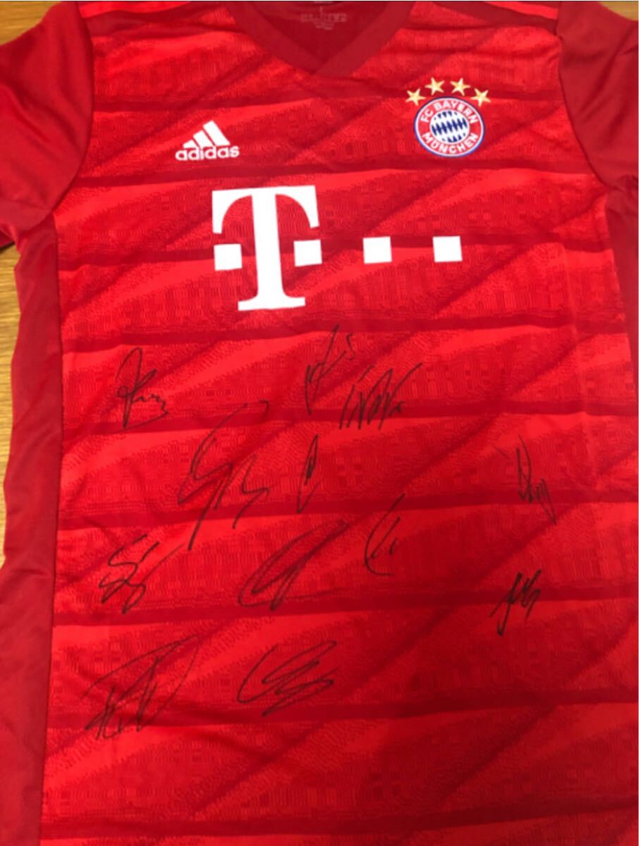 このシャツは、ベンジャミンパバール、デビッドアラバ、レオンゴレツカ、ノイアーなど、多くのプレーヤーによって正面から署名されています。