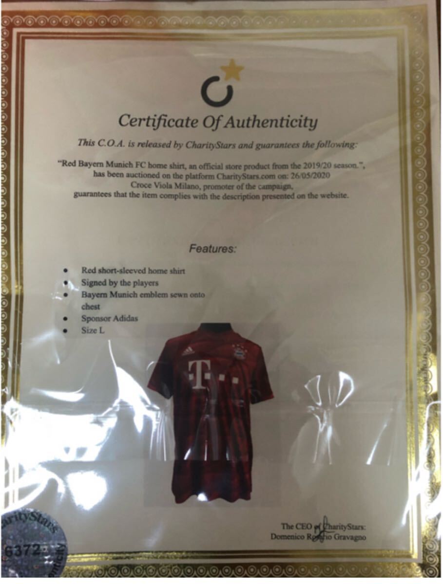 このシャツは、ベンジャミンパバール、デビッドアラバ、レオンゴレツカ、マヌエルノイアー、トーマスミュラー、セルジュニャブリなど、多くのプレーヤーによって正面から署名されています。