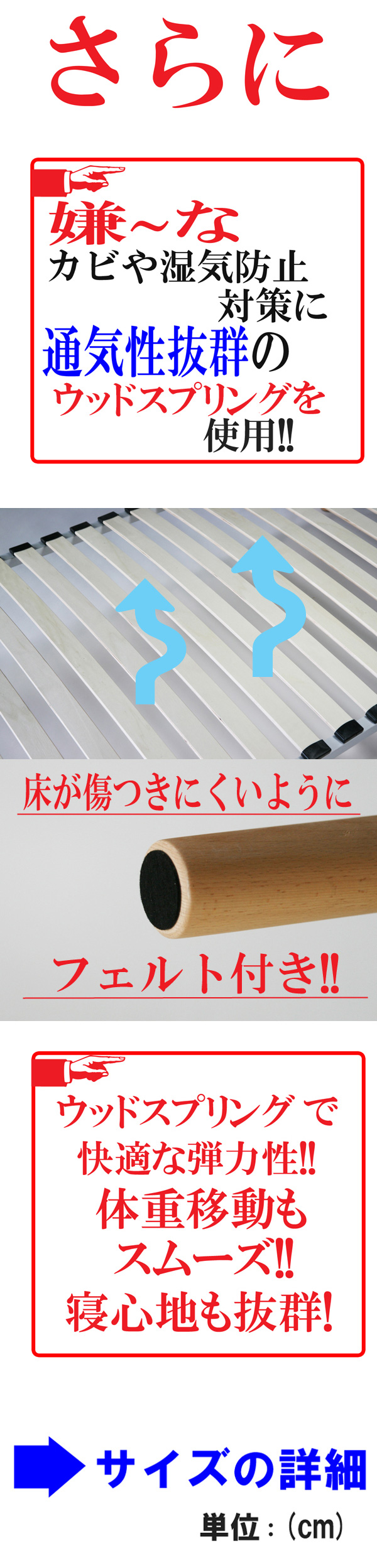 | 商品サイズ | サイズ:本体寸法…約(幅)120x約(奥行)195x約(高さ)26(cm) ≪材質≫スチール(フレーム) ビーチウッド(脚) 積層合板(ウッドスプリング) プラスチック(パーツ) |