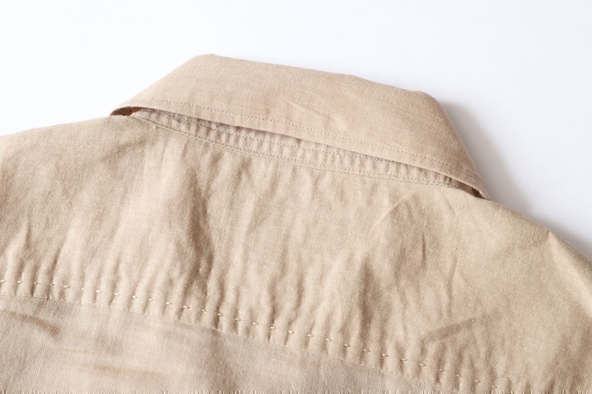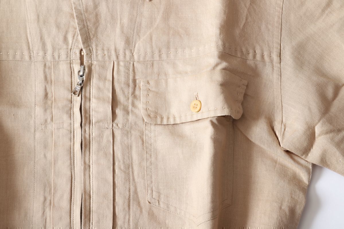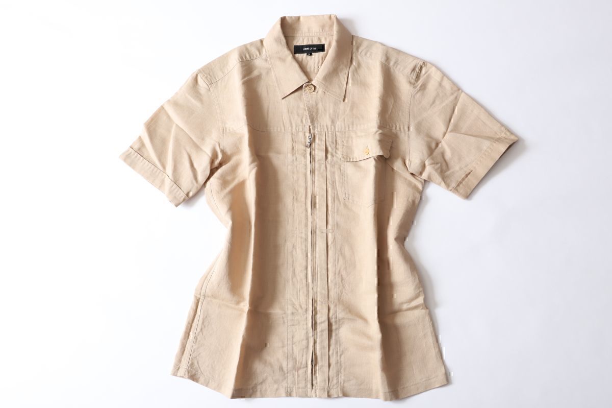 即決★美品★COMME CA ISM コムサイズム セミジップアップ半袖ワイシャツ★M【47-9999】ベージュ薄茶【本物保証】美品★完売★麻混 夏素材