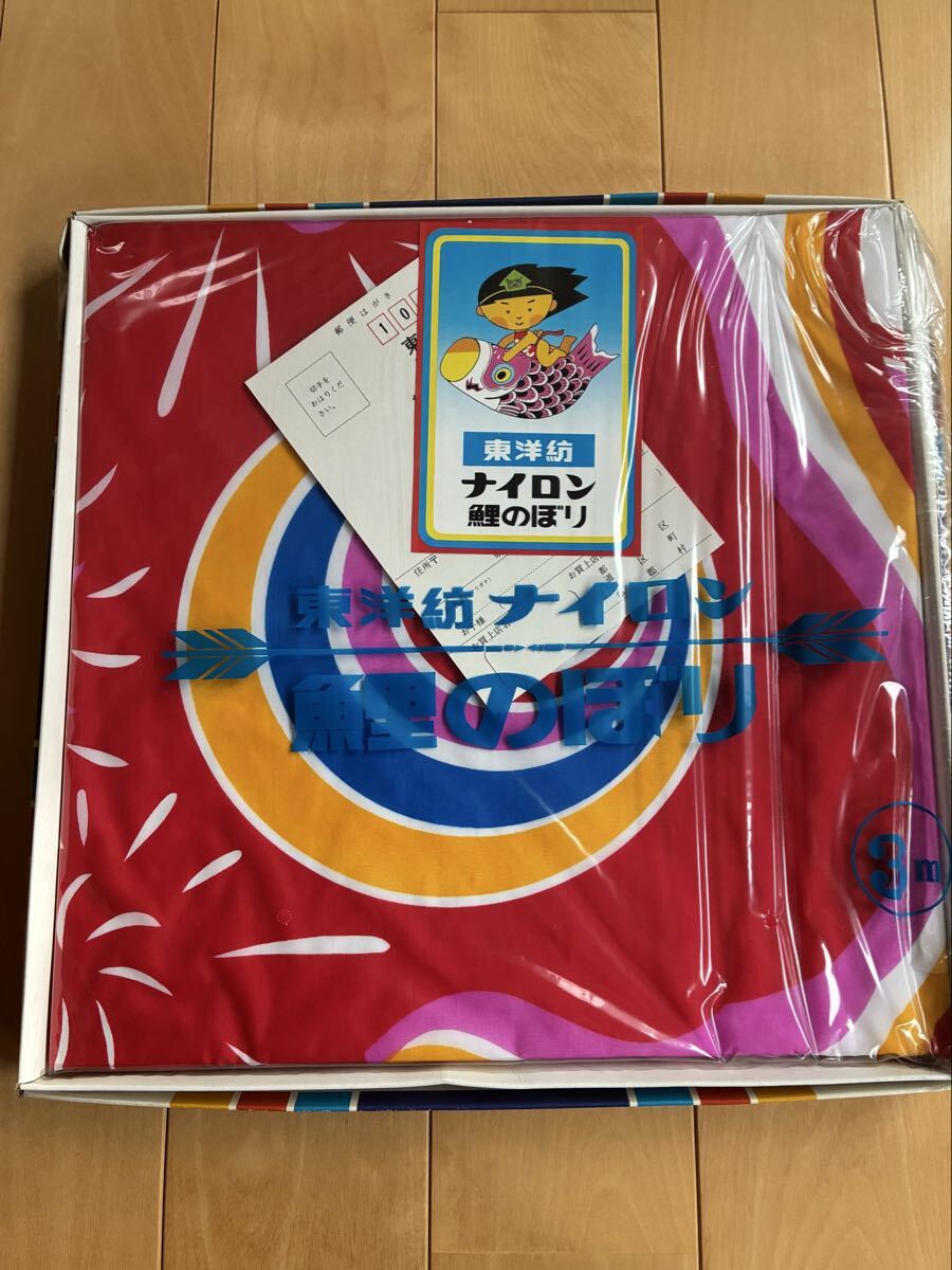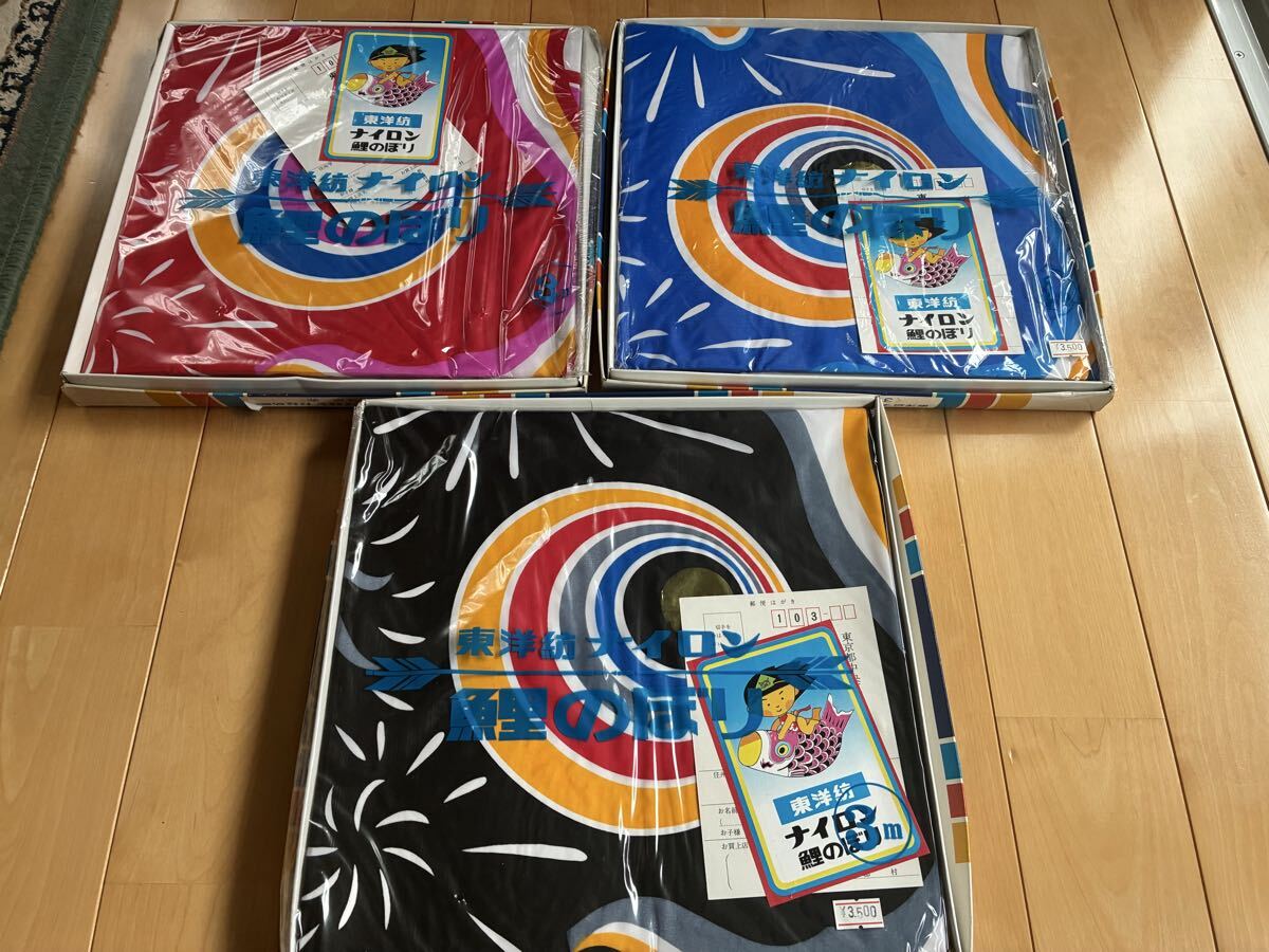 ◎東洋紡 ナイロン 鯉のぼり未使用品 3m 黒/赤/青 美品 3点 幟旗 吹き流し