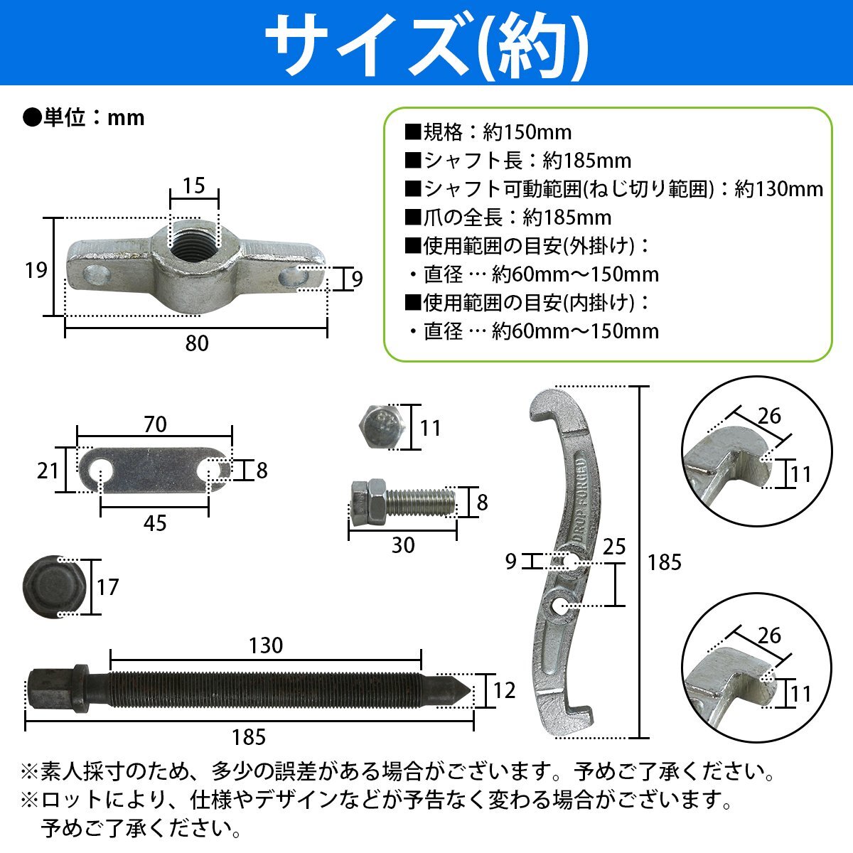 【送料無料】ギヤプーラー 2本爪 60mm-150mm ベアリングプーラー 内掛け 外掛け ギア プーラー プーリー 脱着 交換 ベアリング 引き 抜き