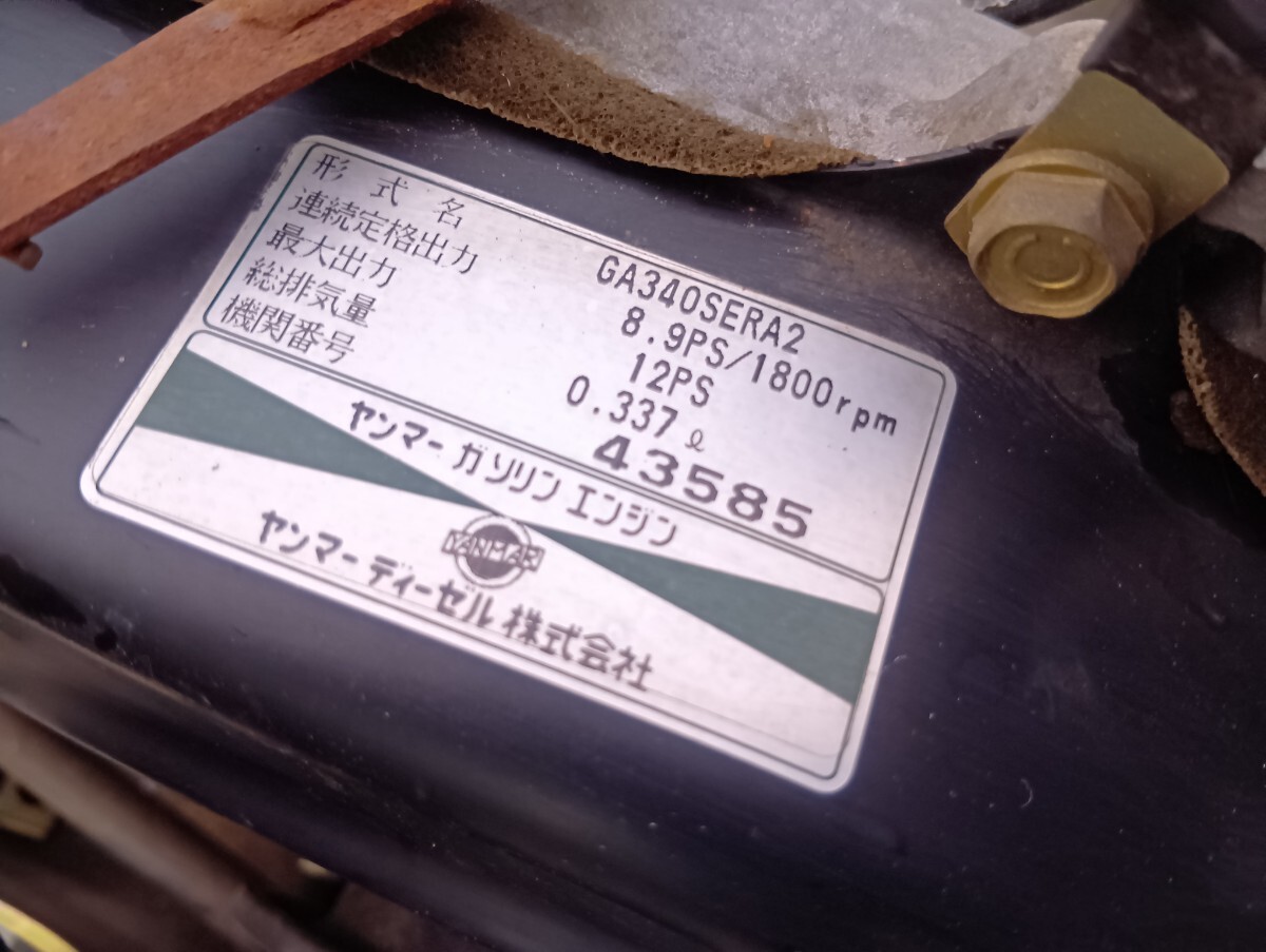ヤンマーの田植え機 RR5 から取り外したガソリンエンジン の出品です。