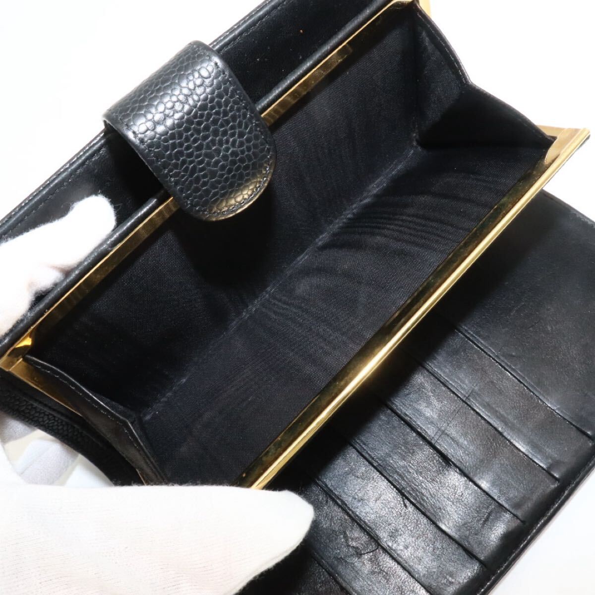 品名 シャネル キャビアスキン ガマ口 長財布 ブラック