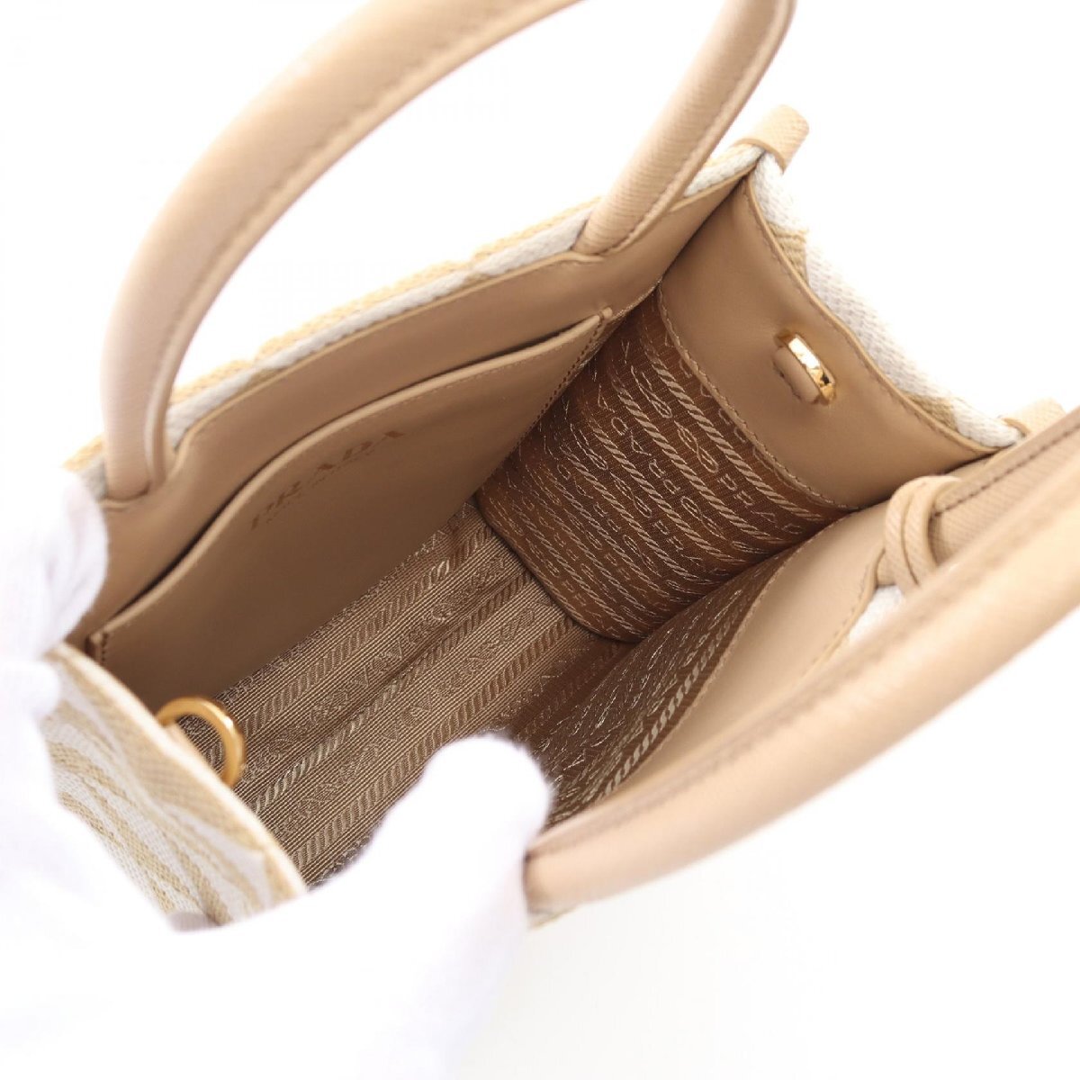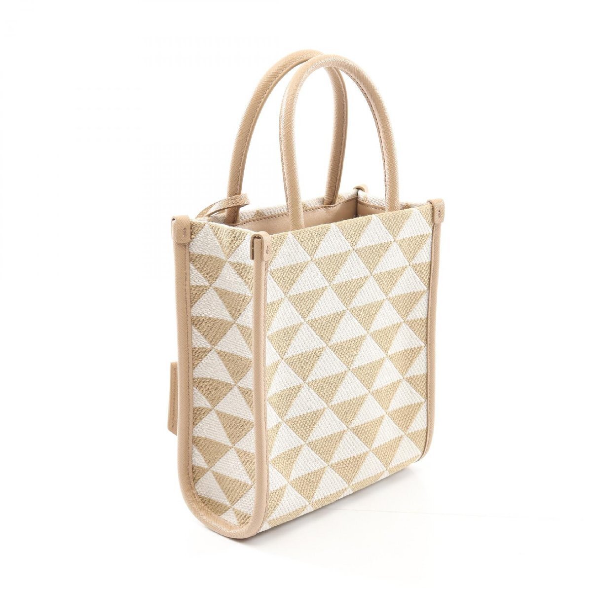 プラダ TRIANGOLO JACQUARD シンボル エンブロイダリー ミニ ブランドオフ PRADA キャンバス ハンドバッグ サフ