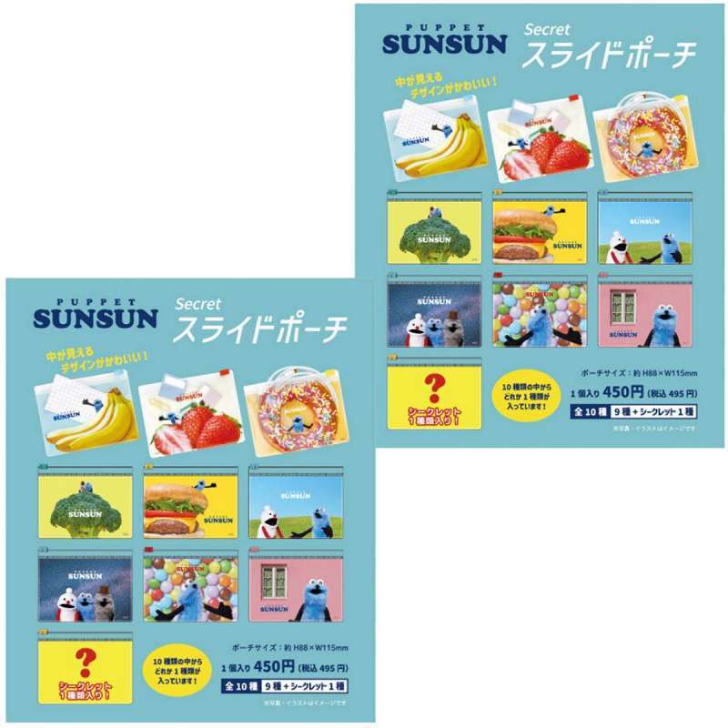 パペットスンスン シークレットスライドポーチ 2個セット ノンノン ゾンゾン スンスン 小物 ポーチ