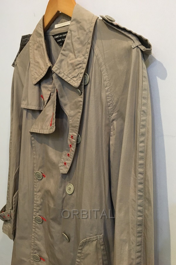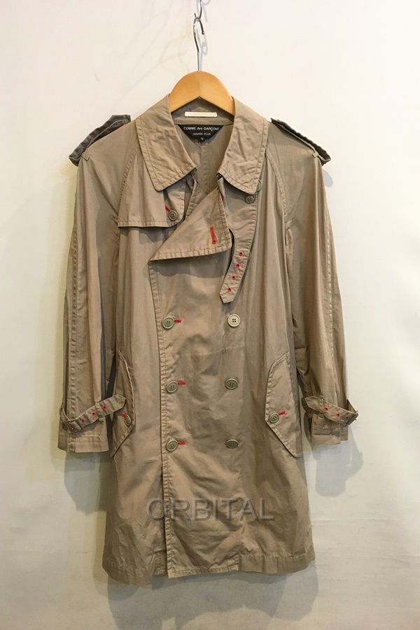 二子玉)COMME des GARCONS HOMME PLUS コムデギャルソンオムプリュス コットントレンチコート メンズ M ※薄汚れ