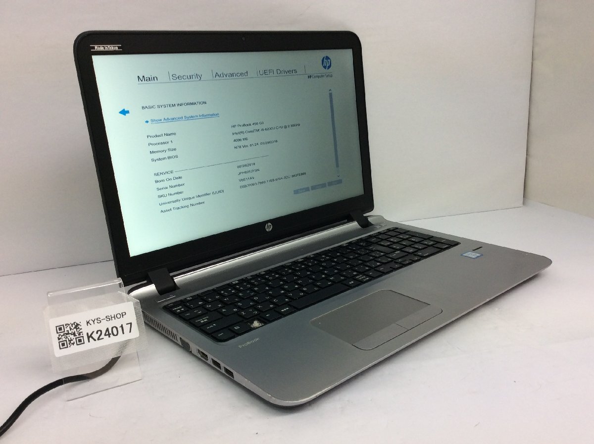 ジャンク/ HP HP ProBook 450 G3 Intel Core i5-6200U メモリ4.1GB ストレージ無し 【K24017】