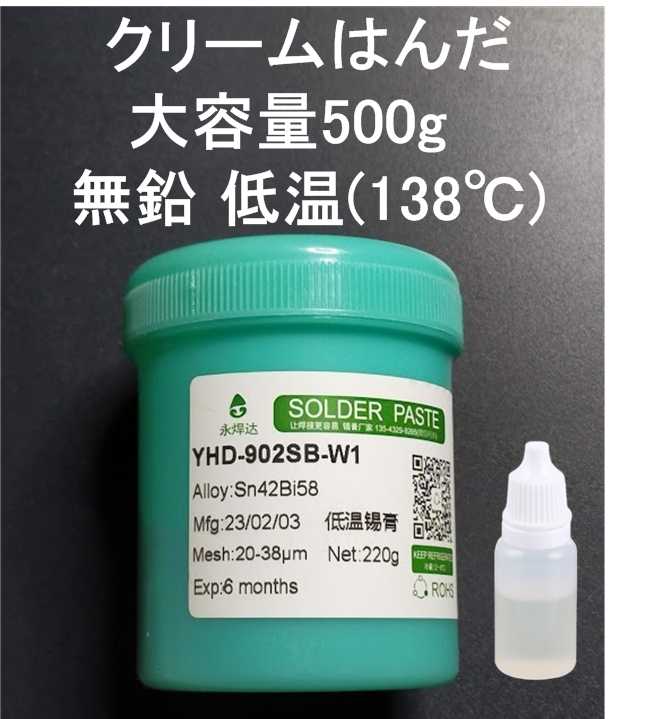 大容量500g 低温 クリームはんだ 無鉛 薄め液付き (液体 半田 ハンダ ソルダー ペースト リフロー ギボシ)