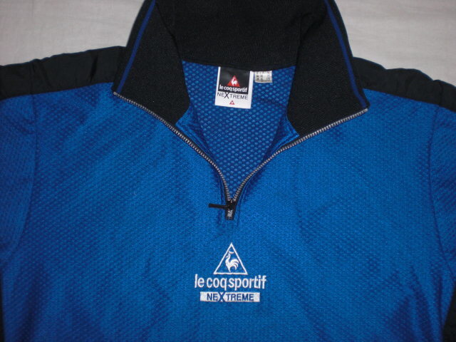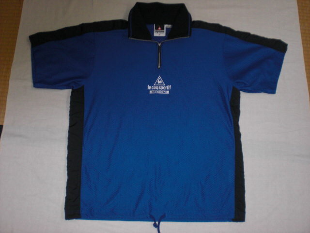 ルコックの正規品(トルビオン製)で日本製。ポリ100%。サイズL(着丈67㎝、身幅57㎝)。USEDですが、キズ、汚れ、使用感のない美品です。胸のルコックロゴ&マークは刺繍になっています。裾は紐で絞れます。