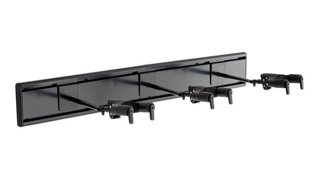 • HERCULES GSP403SB 3-Guitar Wall Rack(ギター・ウォールラック)は、安全性と拡張性を求めるミュージシャンのために設計されたウォール・ラックです。3つのAuto-Swivel AGS Yoke(オート・スイベルAGSヨーク)ハンガーが付属し、楽器を確実に固定します。また、ヘッド形状に合わせて角度調整可能なハンガーは、40~52mm(1.6~2.1インチ)のネック幅に対応しています。