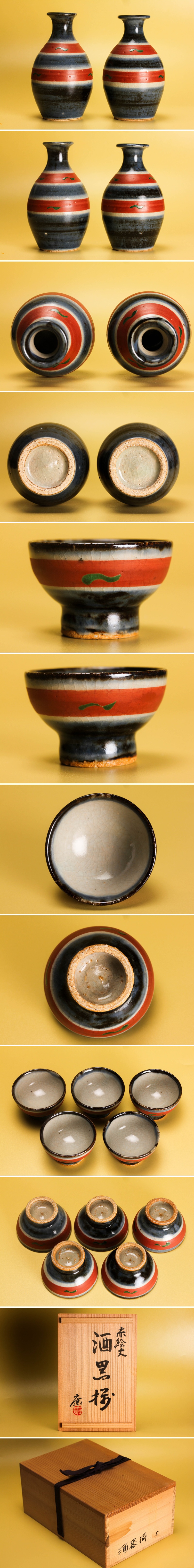 奥田康博 赤絵文酒器揃 徳利 二客 ぐい呑 五客 共箱 本物保証