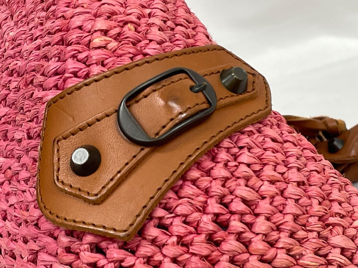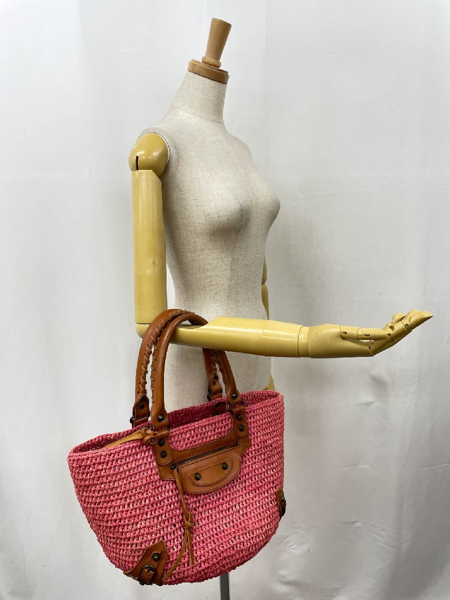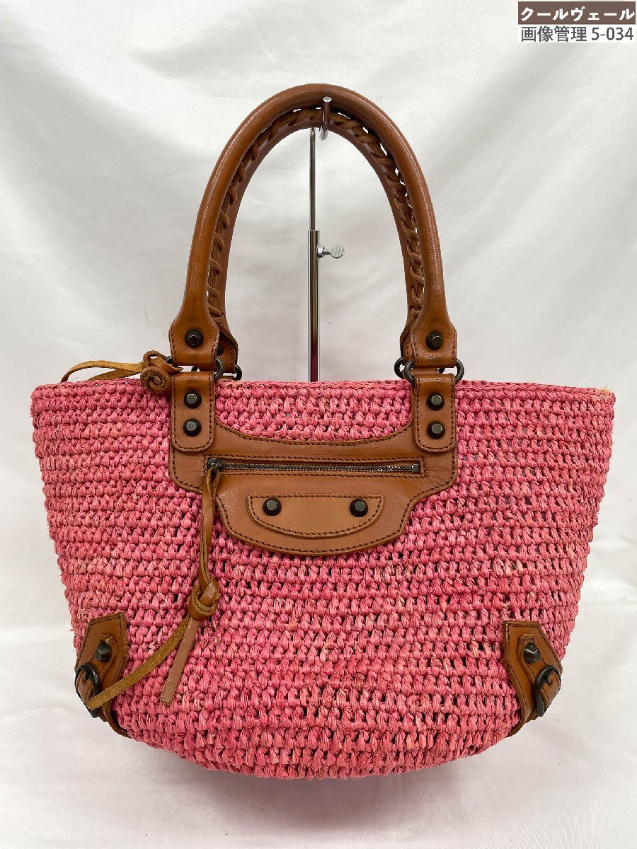 【バレンシアガ BALENCIAGA】 ストロー ラフィア レザー かごバッグ トートバッグ ハンドバッグ 515859 (レディース) ピンク系 ◇5LG3201◇