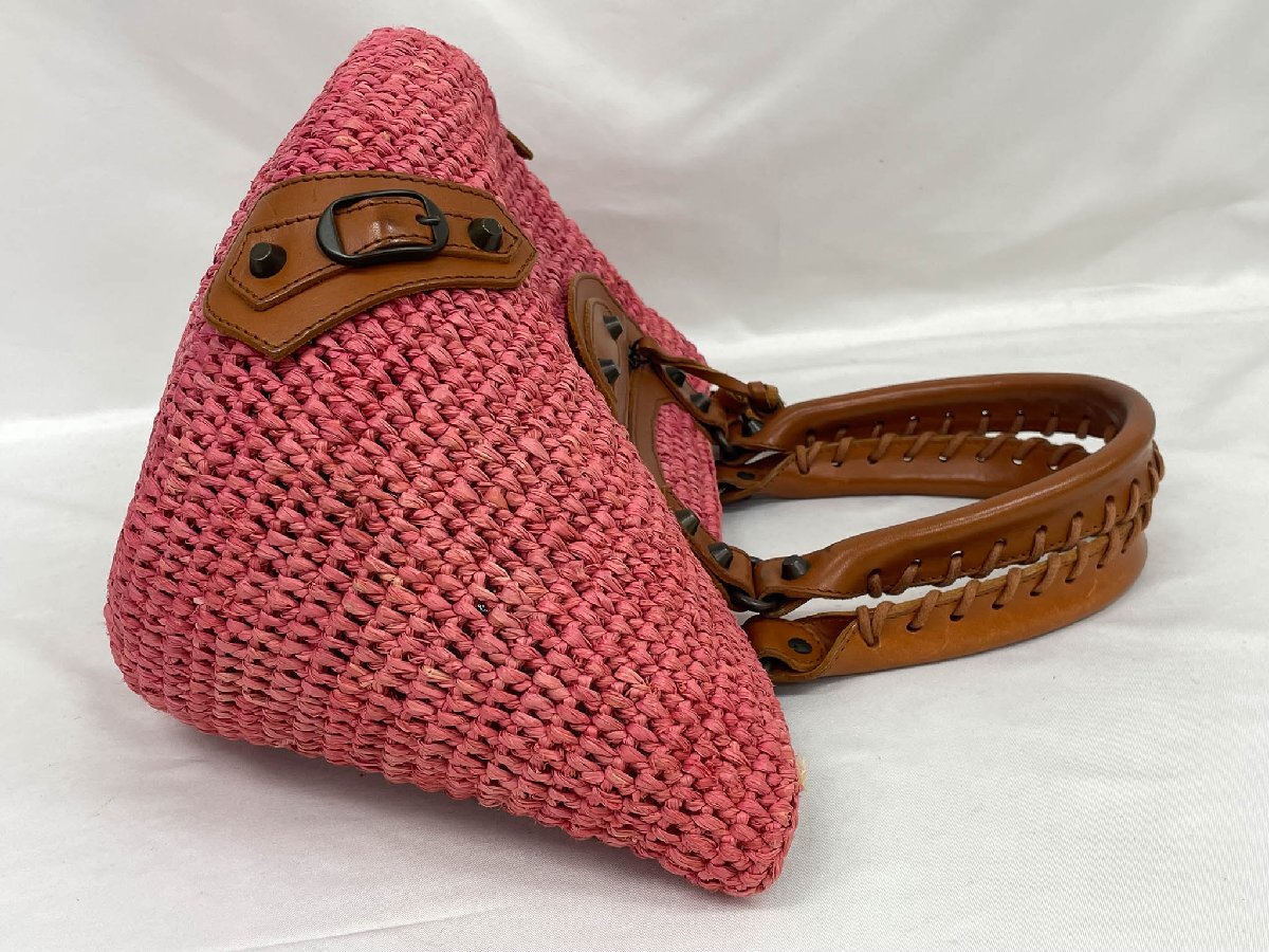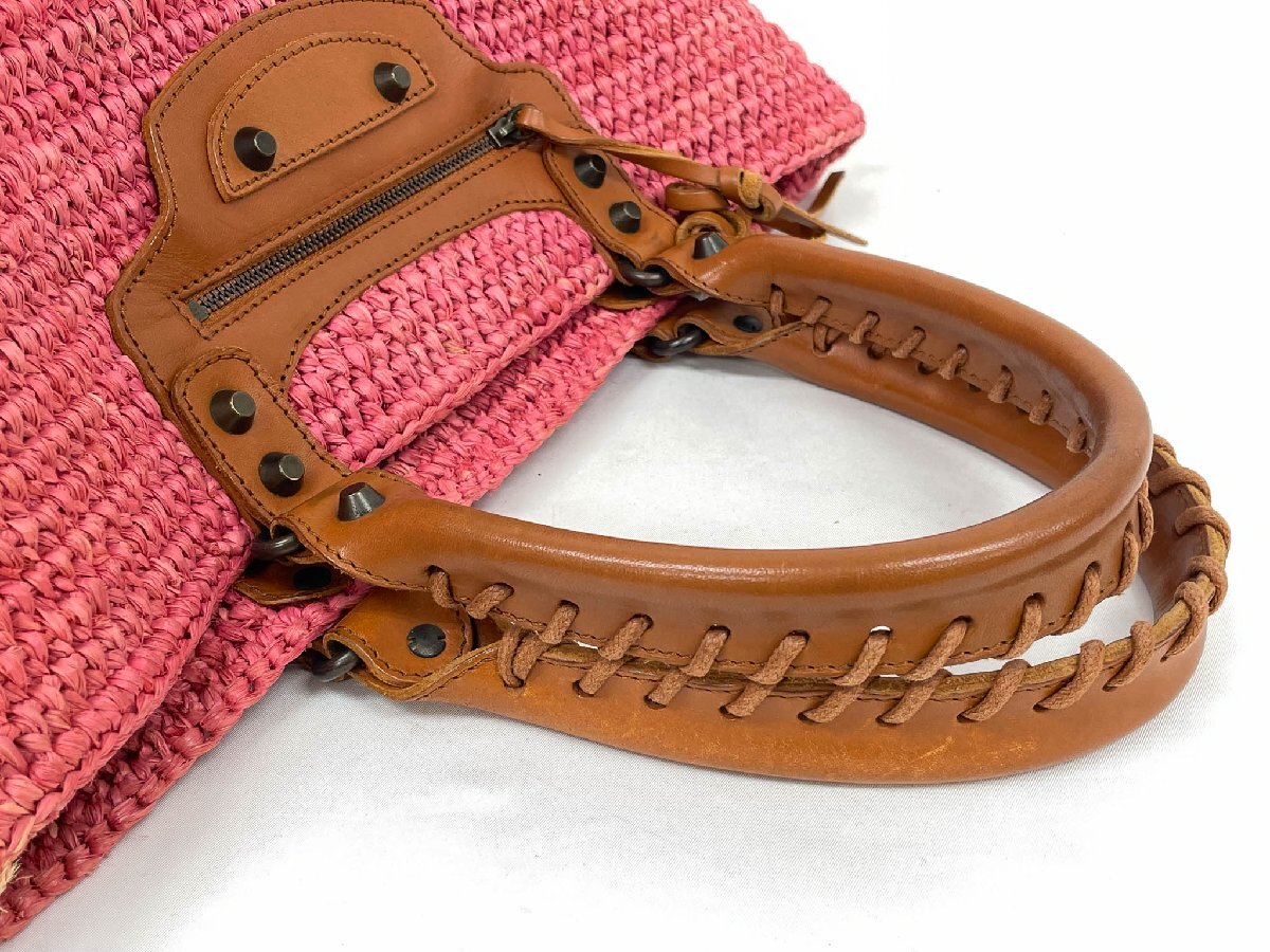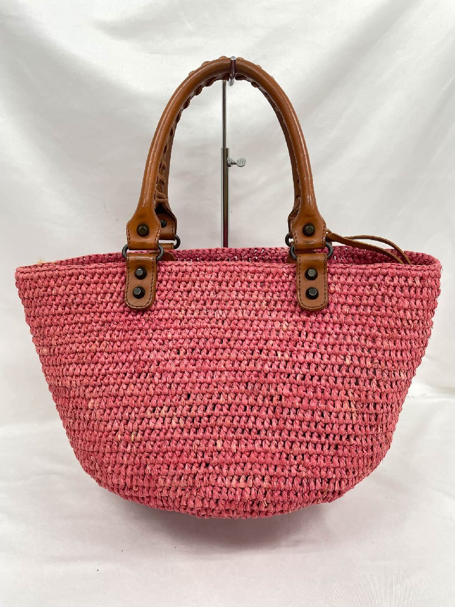 【バレンシアガ BALENCIAGA】 ストロー ラフィア レザー かごバッグ トートバッグ ハンドバッグ 515859 (レディース) ピンク系 ◇5LG3201◇