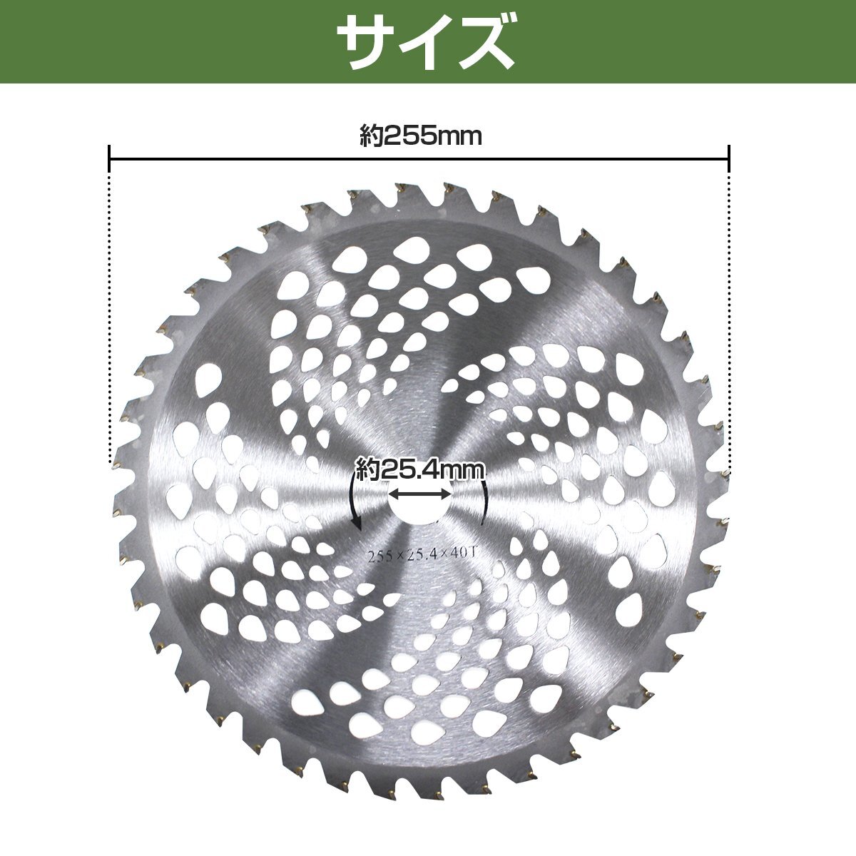 [2枚] セット 草刈り機 チップソー 替刃 外径 255mm 刃数 40枚刃 穴径 25.4mm 草刈機 刈払機 替え刃 255mm×40P×25.4mm