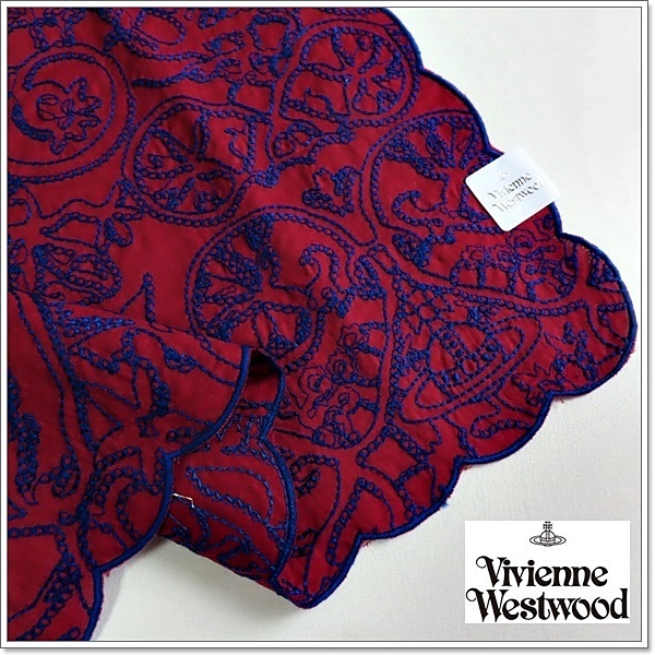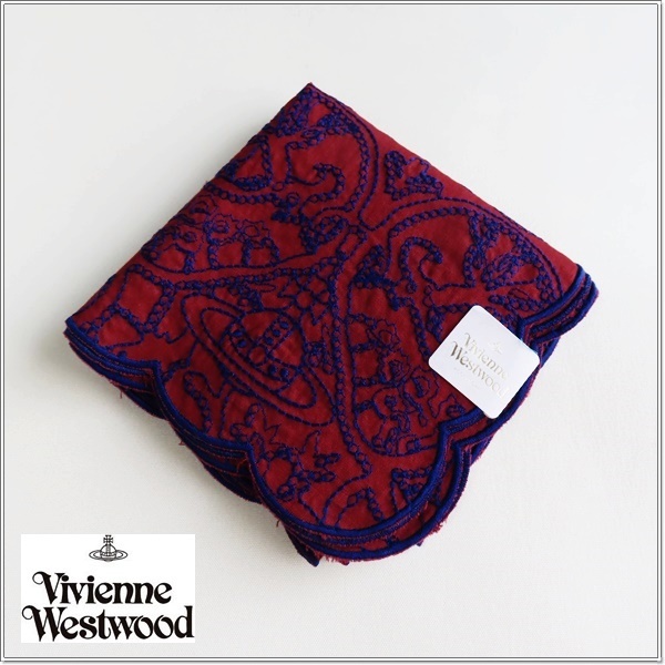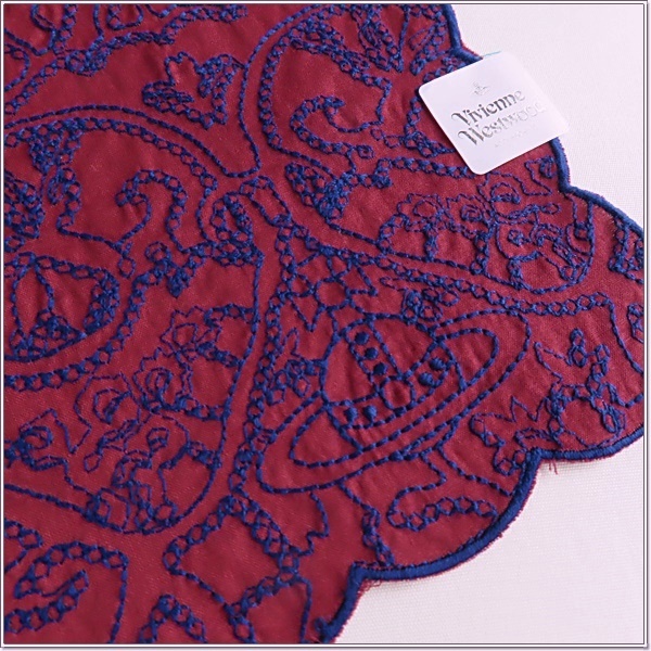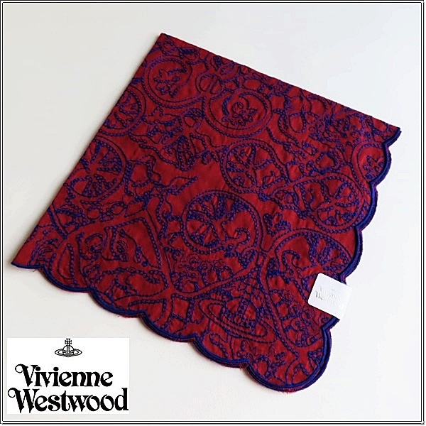 ◆ヴィヴィアンウエストウッド 『高級』総刺繍 ハンカチ 未使用◆ワイン◆