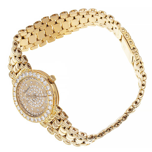 贅沢にあしらわれた純正ダイヤモンドとイエローゴールドの輝きでラグジュアリーな逸品です。