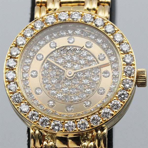 ショパール Chopard ジュエリーウォッチ 10/5602 ダイヤミラー文字盤 K18 純正ダイヤベゼル レディース腕時計 クォーツ 金無垢 ブランド